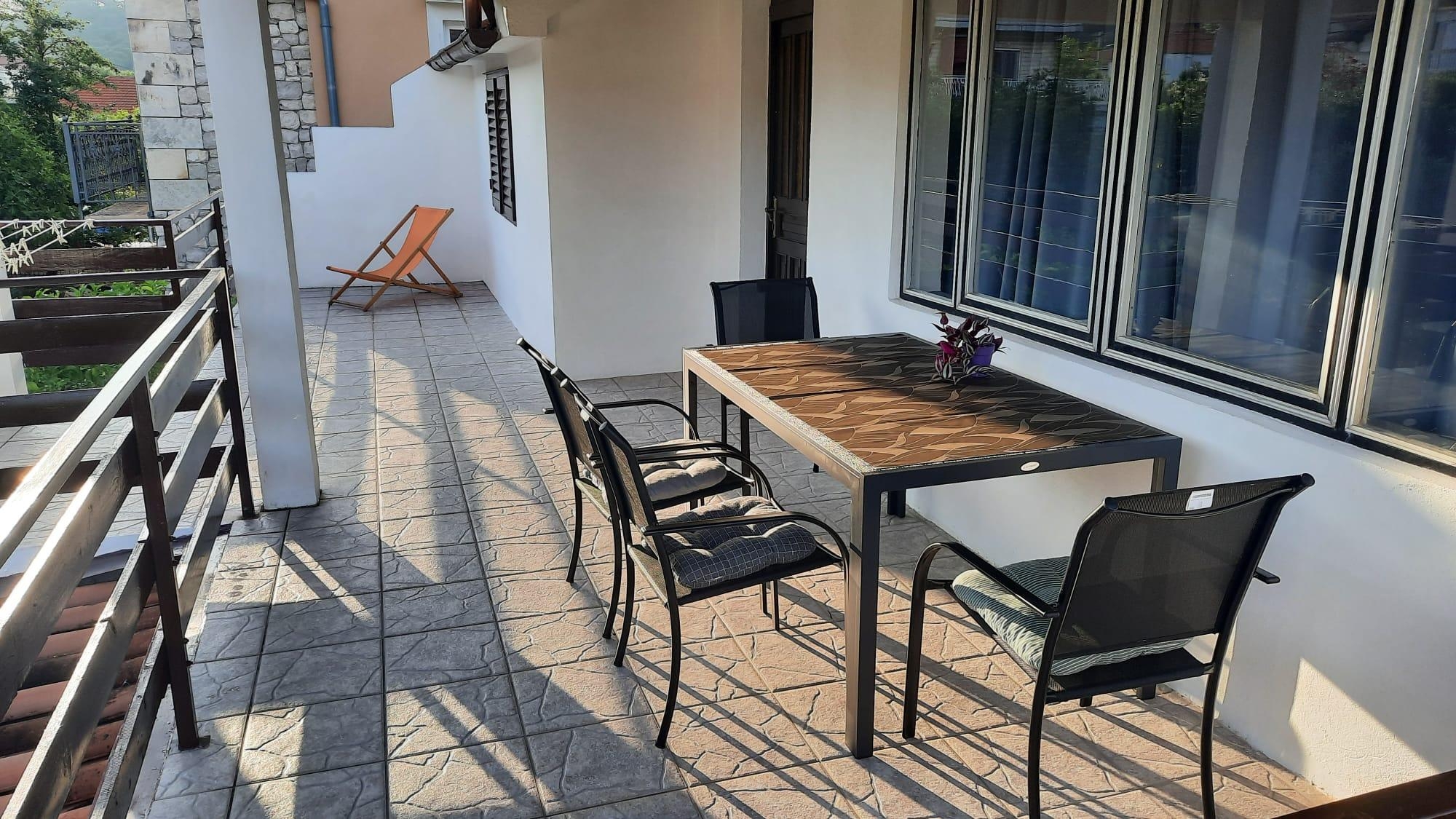 Apartment can accommodate 4 guests. Beds are situated in 2 sleeping rooms, within 56m2. Guests can use a private terrace to enjoy the warm summer evenings. Food can be prepared using barbecue which is shared with other guests too. INCLUDED IN THE PRICE: tourist tax, final cleaning, air-conditioning, parking, internet, iron, ironing board, hairdryer. OBLIGATORY ADDITIONAL COSTS: short stay fee (surcharge depending on a number of booked nights: 30% - 1, 20% - 2, 10% - 3). The availability of additional services for your chosen dates of stay, as well as their prices (if none are listed) must be checked ahead of time. Any additional services not shown in the price calculation are payable directly to the property owner and only if used by the visitor.