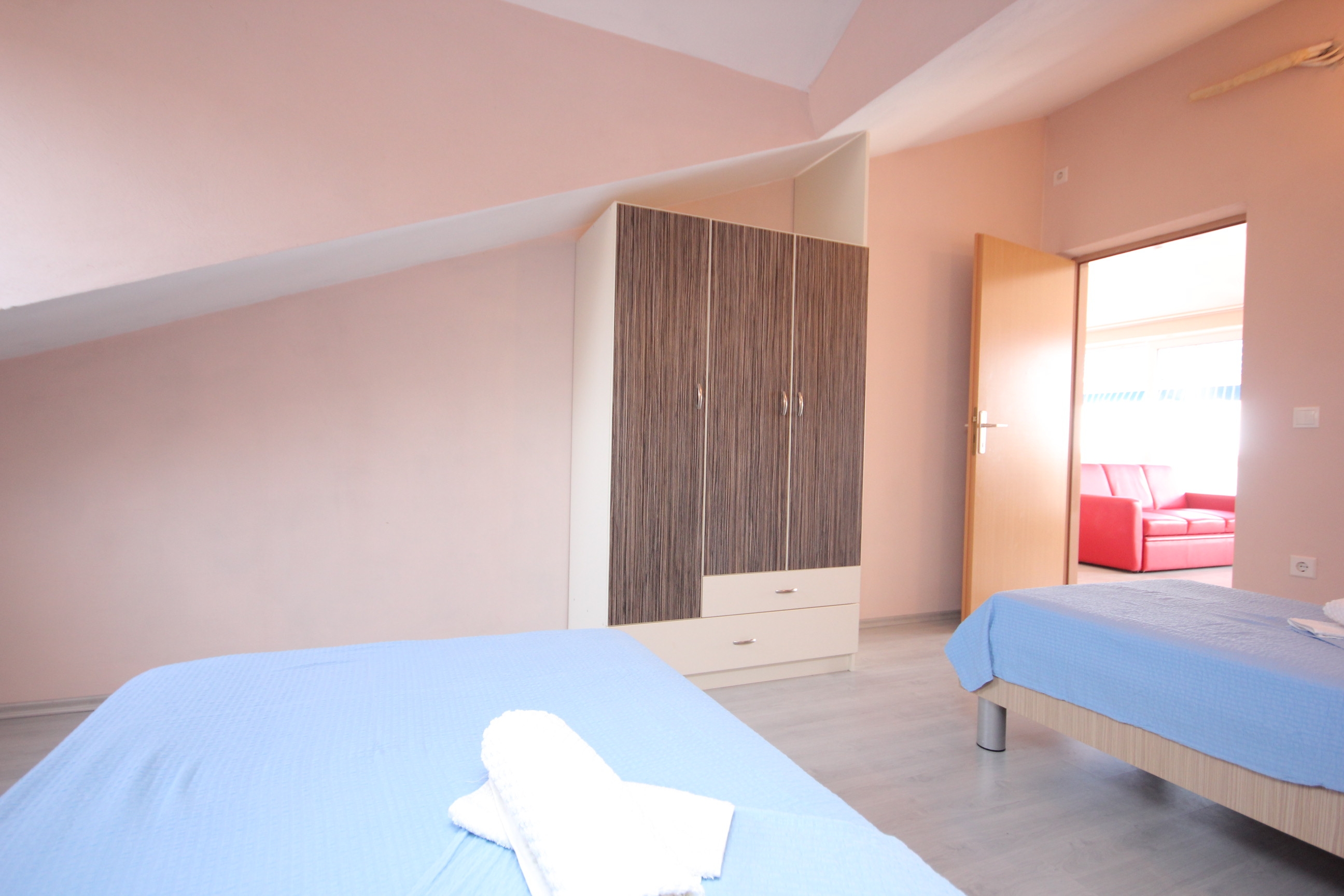 Apartment can accommodate 5 guests. Beds are situated in 2 sleeping rooms, but also in the living room, within 64m2. Guests can use a private terrace to enjoy the warm summer evenings. The apartment offers the sea view. Food can be prepared using barbecue which is shared with other guests too. INCLUDED IN THE PRICE: tourist tax, final cleaning, air-conditioning, parking, internet, boat mooring, baby cot, iron, ironing board, hairdryer. OBLIGATORY ADDITIONAL COSTS: short stay fee (surcharge depending on a number of booked nights: 30% - 1, 20% - 2, 10% - 3). OPTIONAL ADDITIONAL COSTS: laundry (€5.00 washing). The availability of additional services for your chosen dates of stay, as well as their prices (if none are listed) must be checked ahead of time. Any additional services not shown in the price calculation are payable directly to the property owner and only if used by the visitor.