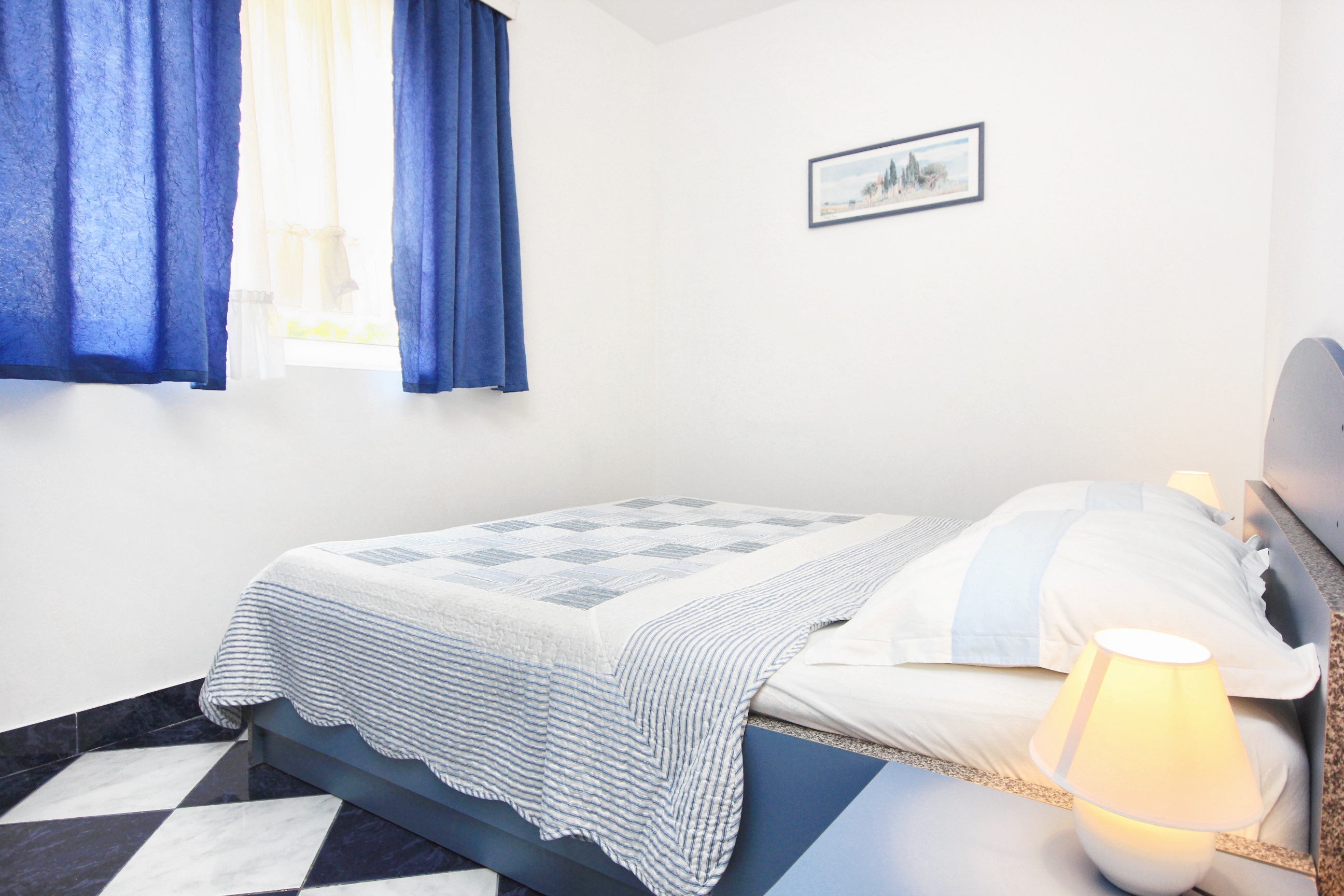 Apartment can accommodate 4 guests. Beds are situated in 1 sleeping rooms, but also in the living room, within 26m2. Guests can use a private terrace to enjoy the warm summer evenings. Food can be prepared using barbecue which is shared with other guests too. This accommodation unit welcomes pets at an additional charge. INCLUDED IN THE PRICE: tourist tax, final cleaning, air-conditioning, parking, internet, iron, ironing board, hairdryer. OBLIGATORY ADDITIONAL COSTS: short stay fee (surcharge depending on a number of booked nights: 30% - 1, 20% - 2, 10% - 3). OPTIONAL ADDITIONAL COSTS: laundry (€5.00 washing), pets (€5.00 per night). The availability of additional services for your chosen dates of stay, as well as their prices (if none are listed) must be checked ahead of time. Any additional services not shown in the price calculation are payable directly to the property owner and only if used by the visitor. Discounts to the base price: free day 21=19 (for reservations of 21 or more days you get 2 free days for the stay until 31122026).
