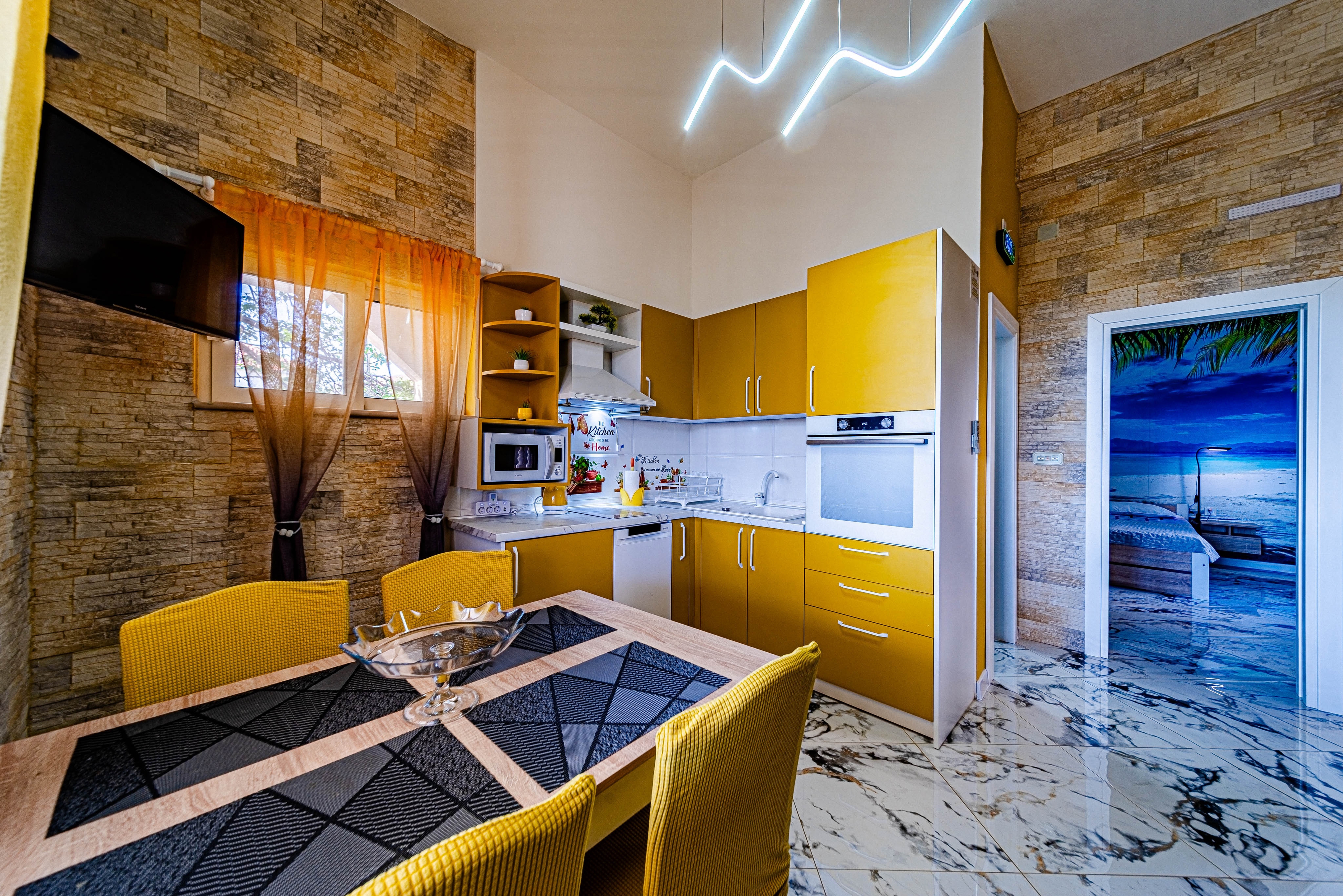 Apartment can accommodate 4 guests. Beds are situated in 1 sleeping rooms, but also in the living room, within 25m2. Guests can use a private terrace to enjoy the warm summer evenings. Food can be prepared using barbecue which is shared with other guests too. INCLUDED IN THE PRICE: tourist tax, final cleaning, air-conditioning, parking, internet. OBLIGATORY ADDITIONAL COSTS: short stay fee (surcharge depending on a number of booked nights: 30% - 1, 20% - 2, 10% - 3). The availability of additional services for your chosen dates of stay, as well as their prices (if none are listed) must be checked ahead of time. Any additional services not shown in the price calculation are payable directly to the property owner and only if used by the visitor. Discounts to the base price: free day 14=13 (for reservations of 14 or more days you get one free day for the stay until 31122026).