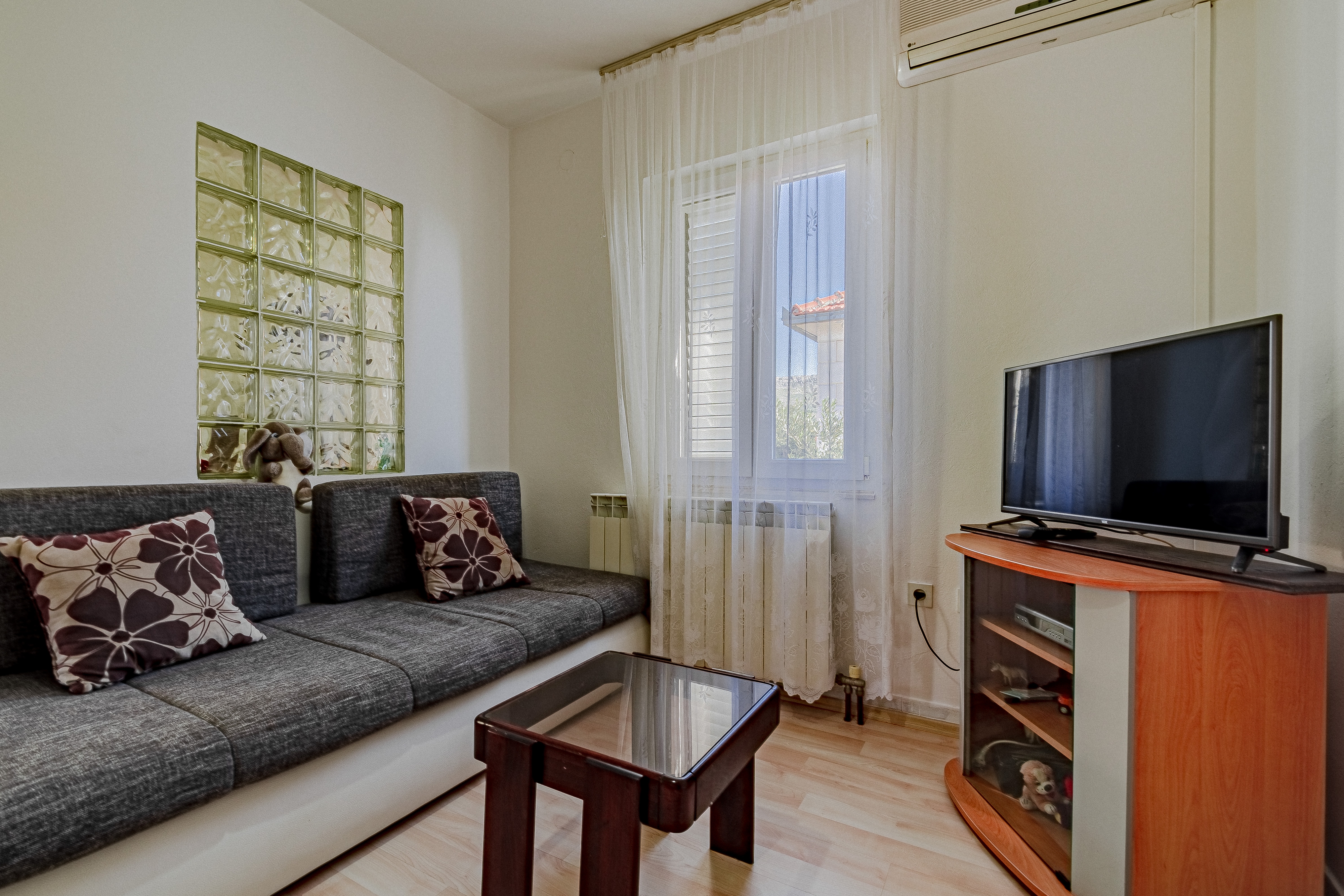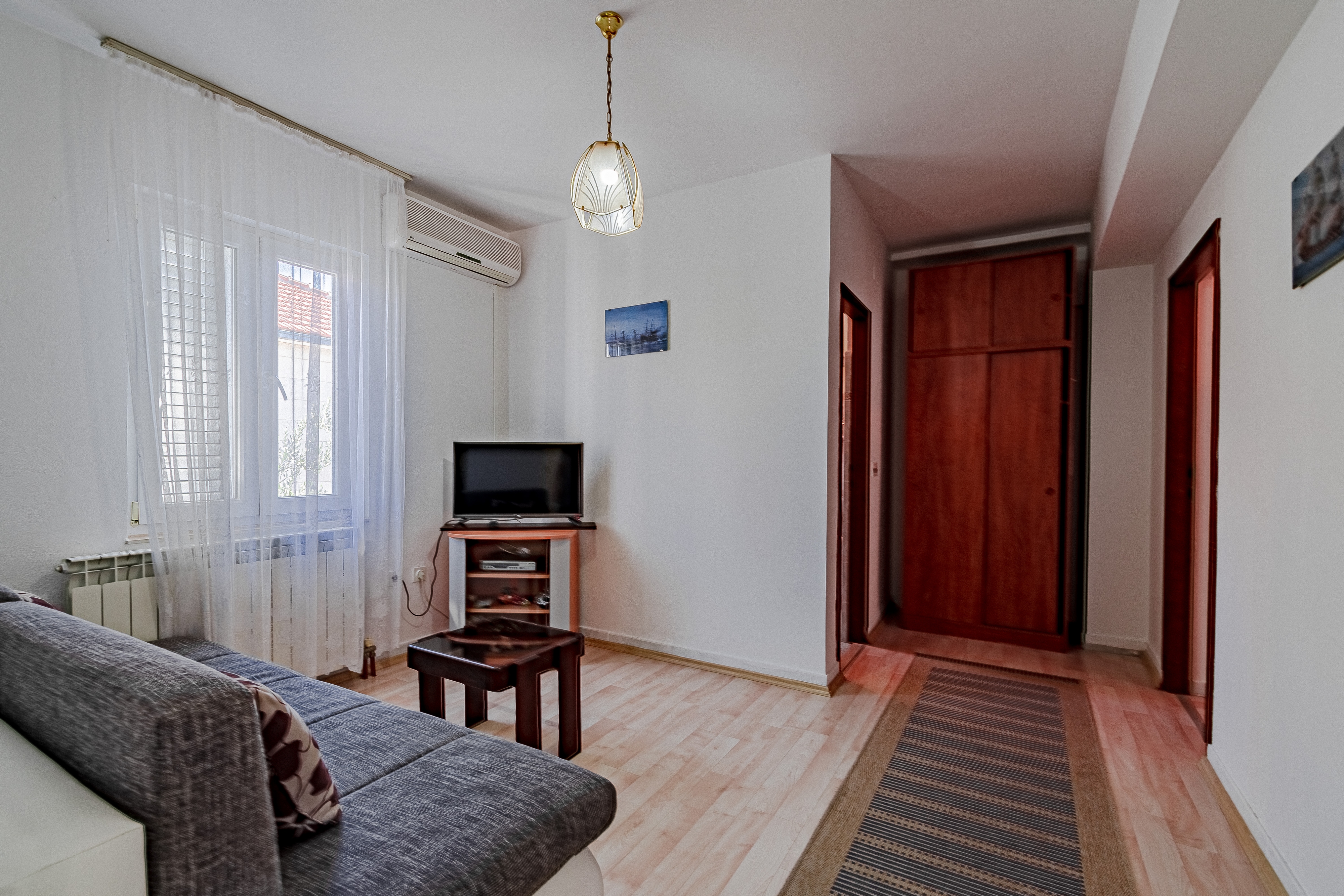 Apartment can accommodate 3 guests. Beds are situated in 1 sleeping rooms, but also in the living room, within 40m2. Guests can use a private terrace to enjoy the warm summer evenings. Food can be prepared using barbecue which is shared with other guests too. INCLUDED IN THE PRICE: tourist tax, final cleaning, central heating, parking, internet, baby cot, iron, ironing board, hairdryer. OBLIGATORY ADDITIONAL COSTS: short stay fee (surcharge depending on a number of booked nights: 30% - 1, 20% - 2, 10% - 3). OPTIONAL ADDITIONAL COSTS: air-conditioning (€5.00 per night). The availability of additional services for your chosen dates of stay, as well as their prices (if none are listed) must be checked ahead of time. Any additional services not shown in the price calculation are payable directly to the property owner and only if used by the visitor. Discounts to the base price: free day 14=13 (for reservations of 14 or more days you get one free day for the stay until 31122026).
