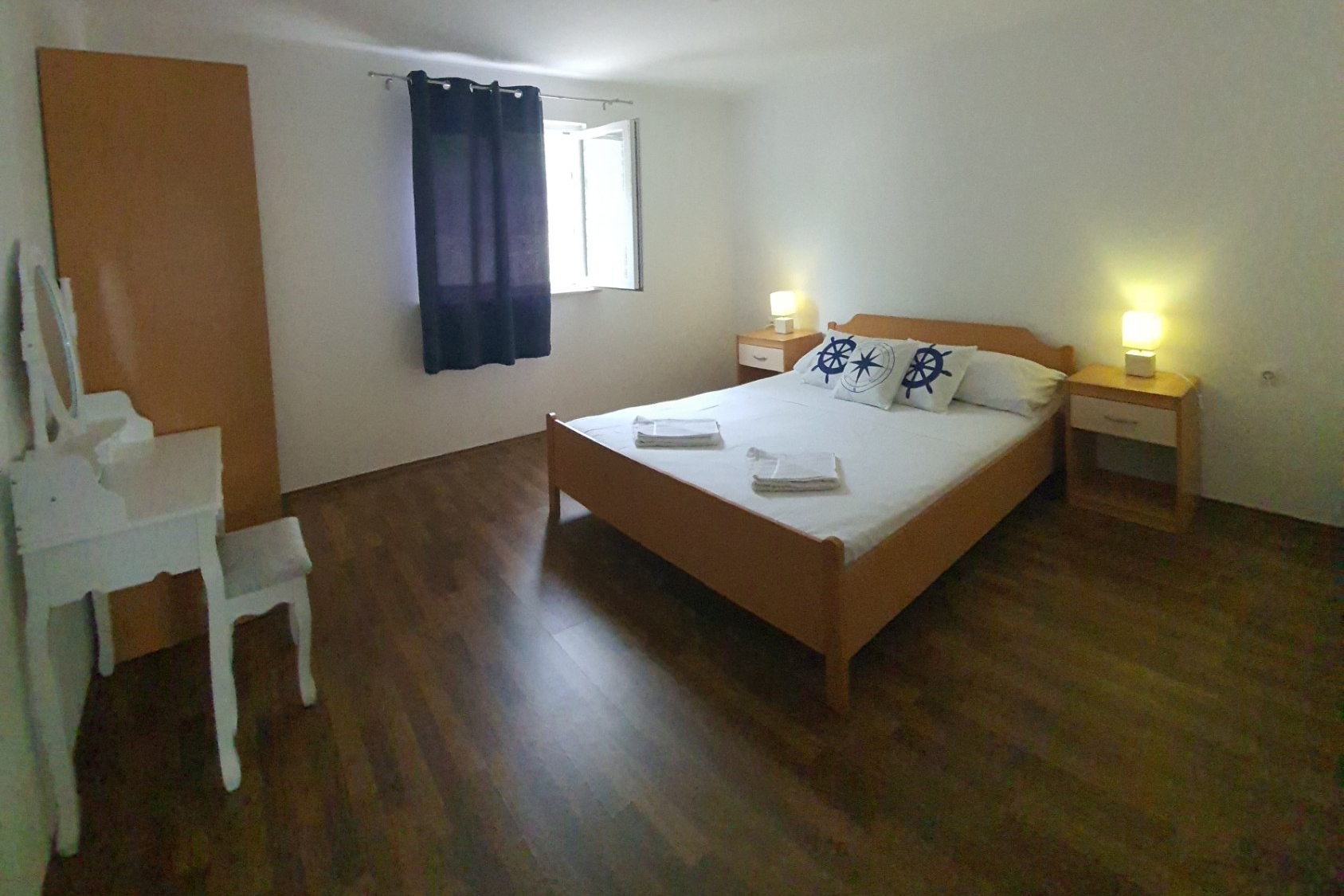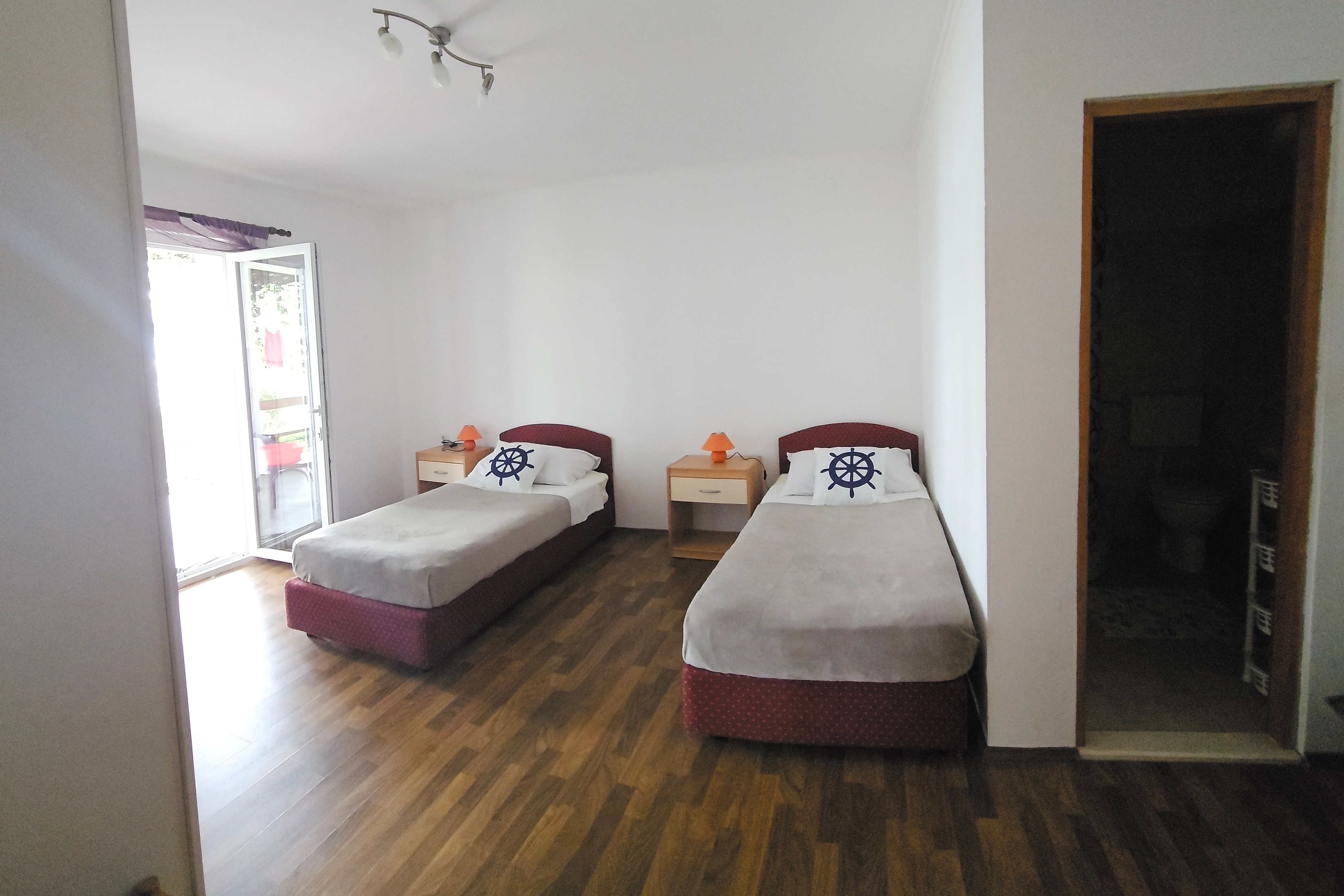 Apartment can accommodate 6 guests. Beds are situated in 2 sleeping rooms, but also in the dining room, within 57m2. The apartment offers the sea view. Food can be prepared using barbecue which is shared with other guests too. Reserved accommodation unit has a shared terrace. INCLUDED IN THE PRICE: tourist tax, final cleaning, air-conditioning, parking, internet, boat mooring, baby cot, sunchairs. OBLIGATORY ADDITIONAL COSTS: short stay fee (surcharge depending on a number of booked nights: 30% - 1, 20% - 2, 10% - 3). The availability of additional services for your chosen dates of stay, as well as their prices (if none are listed) must be checked ahead of time. Any additional services not shown in the price calculation are payable directly to the property owner and only if used by the visitor.