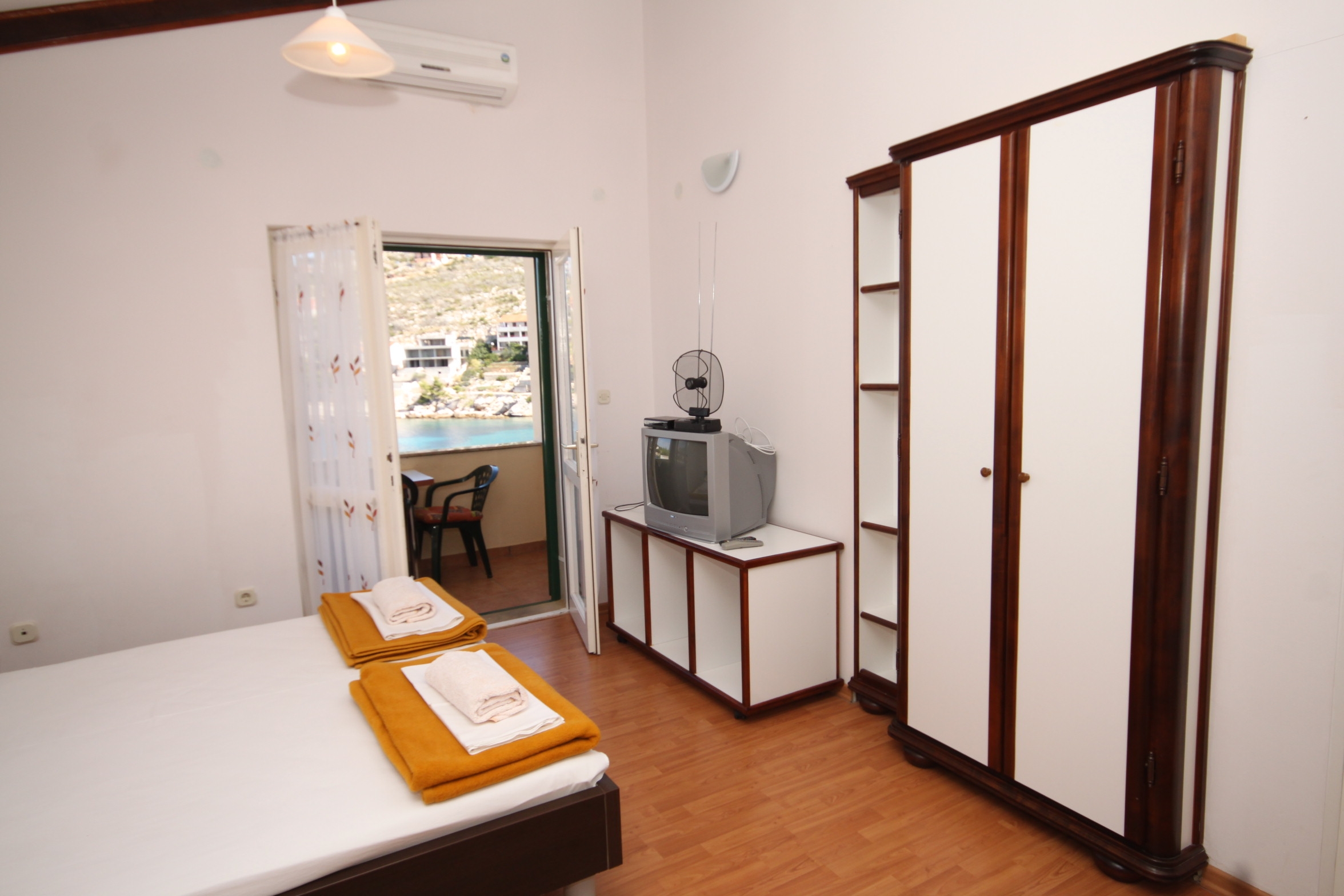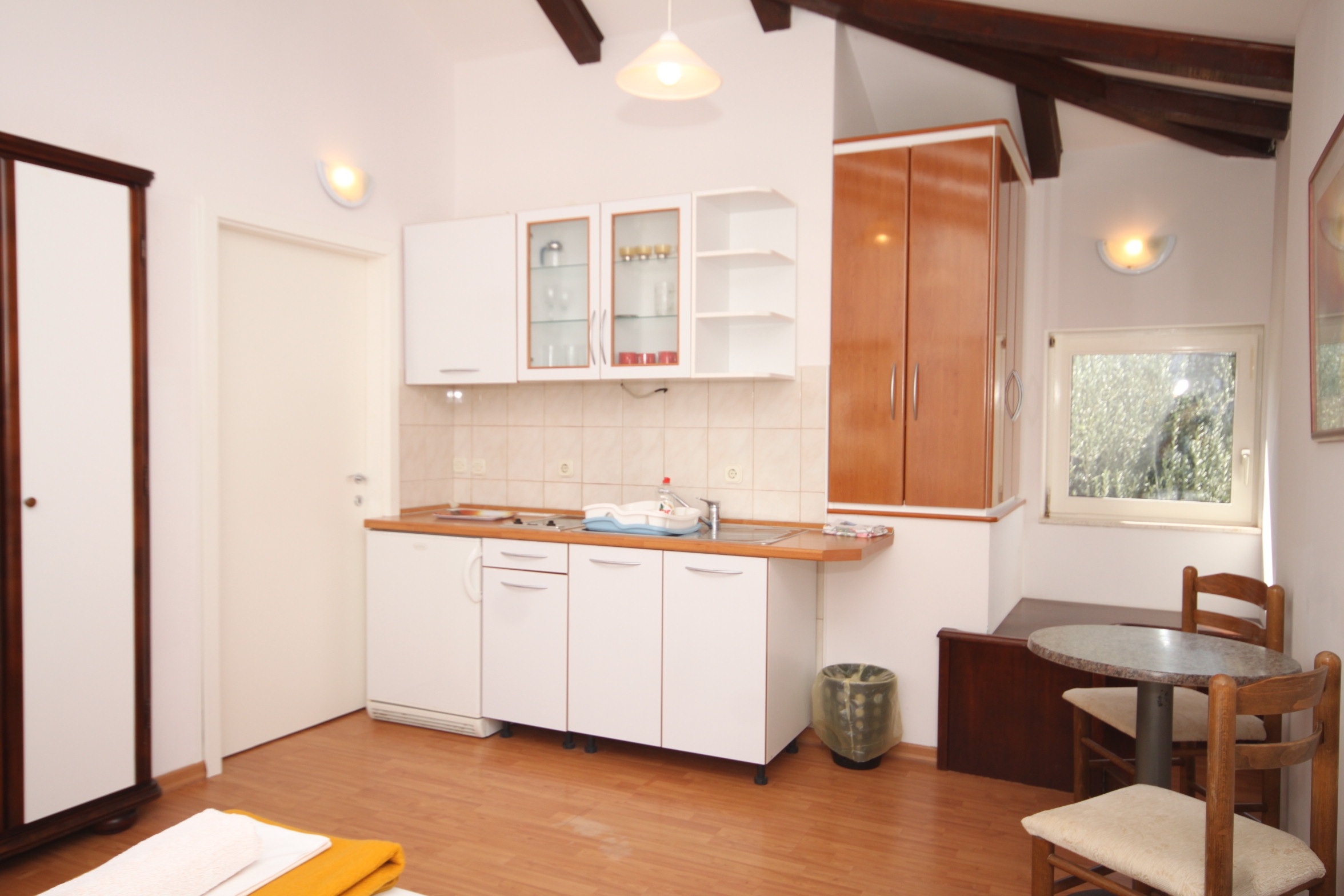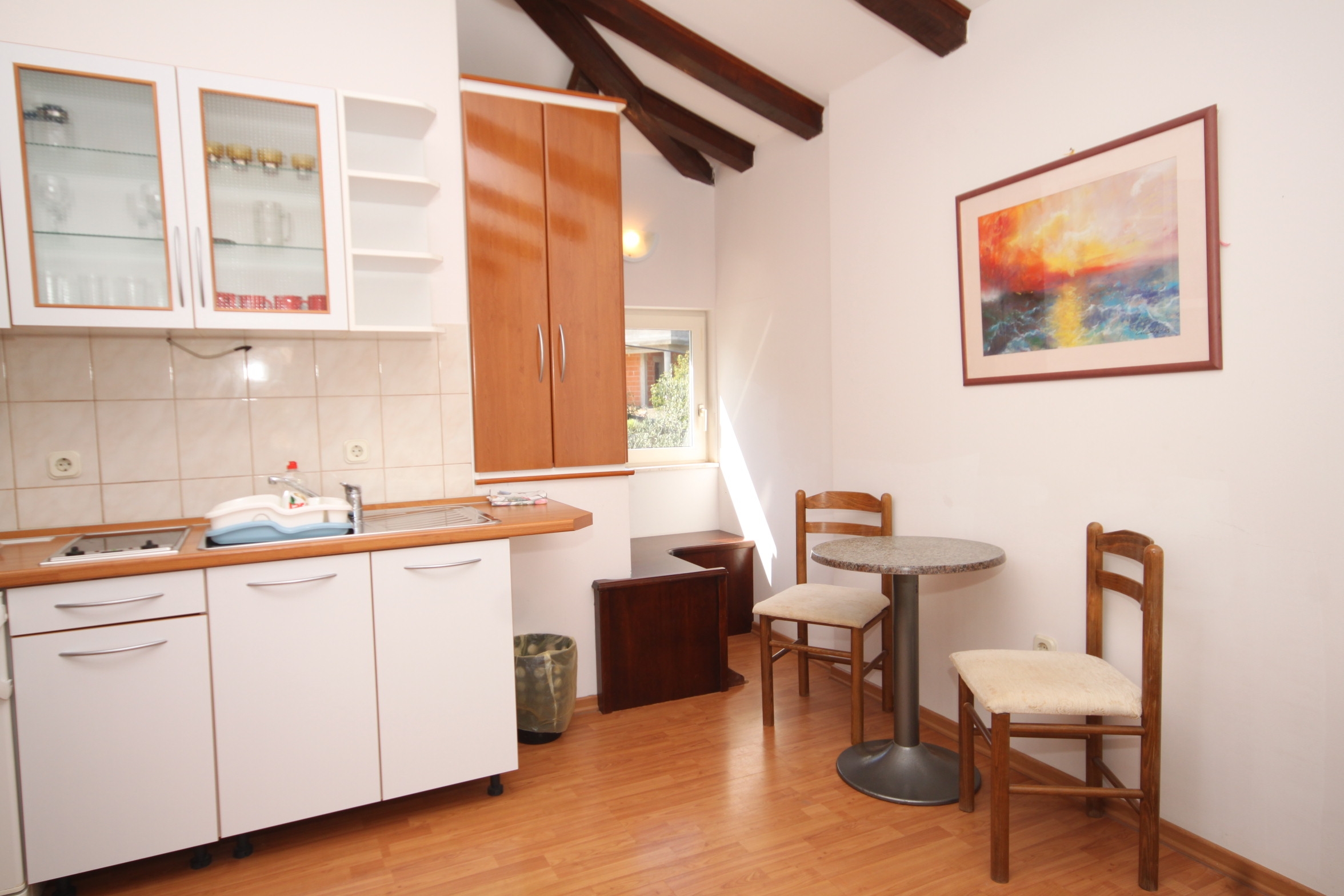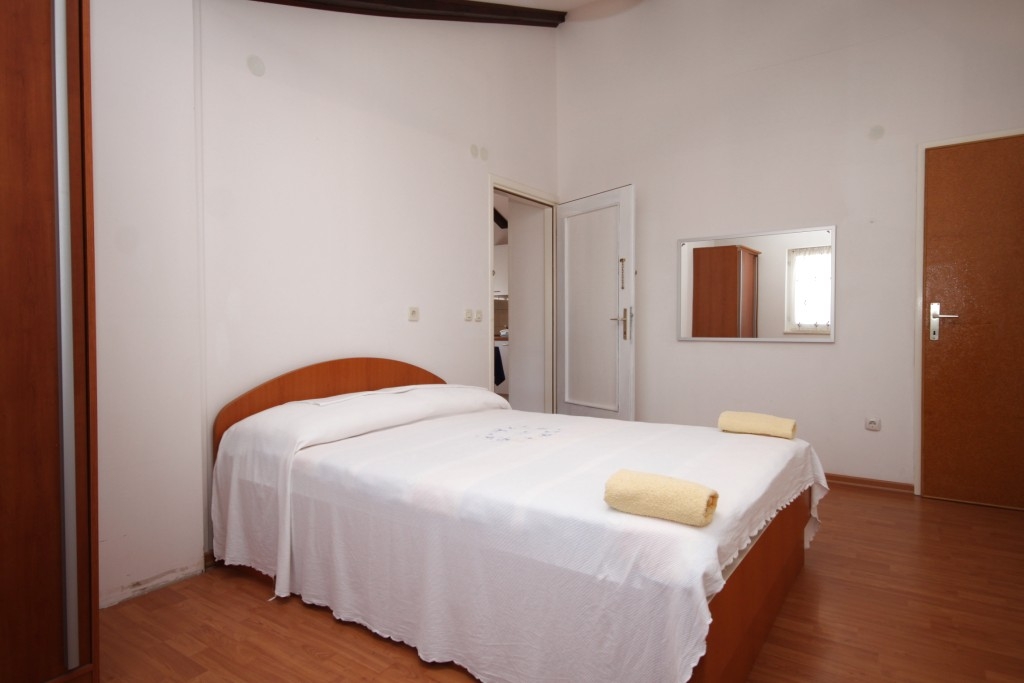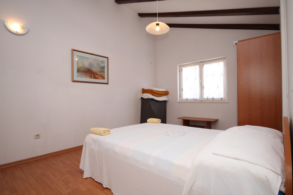 Apartment can accommodate 4 guests. Beds are situated in 1 sleeping rooms, but also in the living room, within 37m2. Guests can use a private balcony to enjoy the warm summer evenings. The apartment offers the sea view. Food can be prepared using barbecue which is shared with other guests too. This accommodation unit welcomes pets at an additional charge. INCLUDED IN THE PRICE: tourist tax, final cleaning, parking, internet, boat mooring, bicycle, iron, ironing board, hairdryer, sunchairs. OBLIGATORY ADDITIONAL COSTS: short stay fee (surcharge depending on a number of booked nights: 30% - 1, 20% - 2, 10% - 3). OPTIONAL ADDITIONAL COSTS: air-conditioning (€8.00 per night), laundry (€5.00 washing), pets (€5.00 per night). The availability of additional services for your chosen dates of stay, as well as their prices (if none are listed) must be checked ahead of time. Any additional services not shown in the price calculation are payable directly to the property owner and only if used by the visitor.