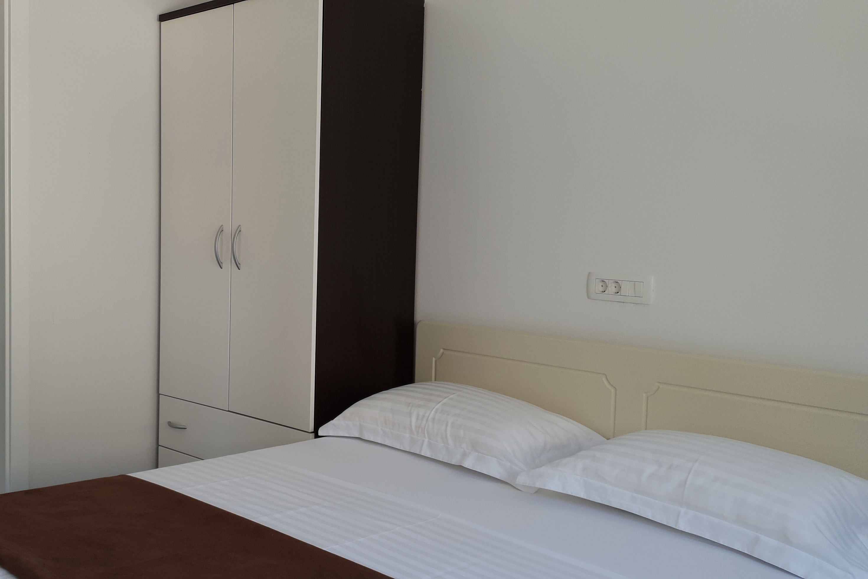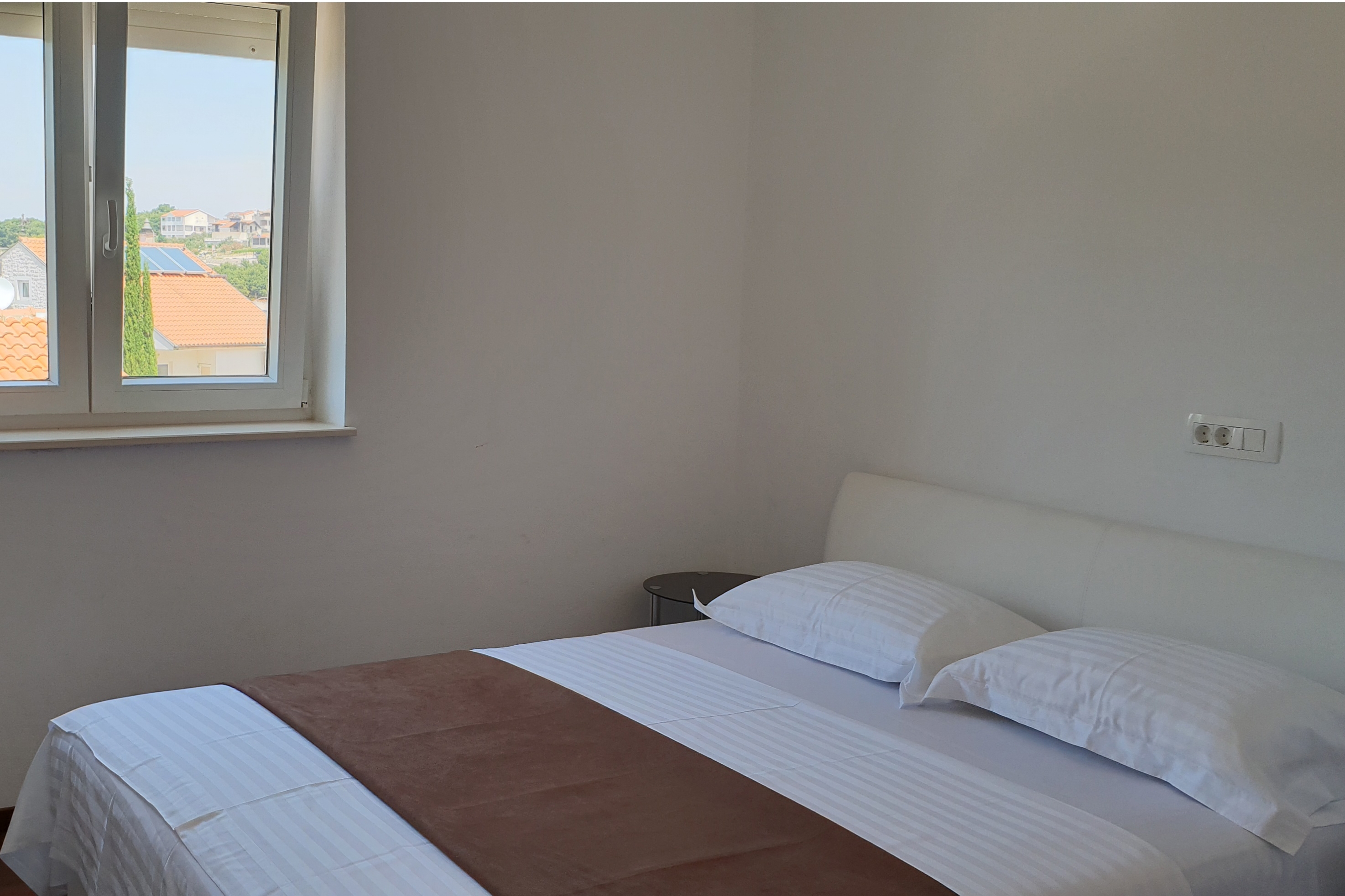 Apartment can accommodate 5 guests. Beds are situated in 2 sleeping rooms, but also in the dining room, within 41m2. Guests can use a private terrace to enjoy the warm summer evenings. The apartment offers the sea view. Food can be prepared using barbecue which is shared with other guests too. This accommodation unit welcomes pets at an additional charge. INCLUDED IN THE PRICE: tourist tax, final cleaning, parking, internet, boat mooring, bicycle, iron, ironing board, hairdryer. OBLIGATORY ADDITIONAL COSTS: short stay fee (surcharge depending on a number of booked nights: 30% - 1, 20% - 2, 10% - 3). OPTIONAL ADDITIONAL COSTS: air-conditioning (€8.00 per night), laundry (€3.00 washing), pets (€5.00 per night). The availability of additional services for your chosen dates of stay, as well as their prices (if none are listed) must be checked ahead of time. Any additional services not shown in the price calculation are payable directly to the property owner and only if used by the visitor. Discounts to the base price: free day 14=13 (for reservations of 14 or more days you get one free day for the stay until 31122026).