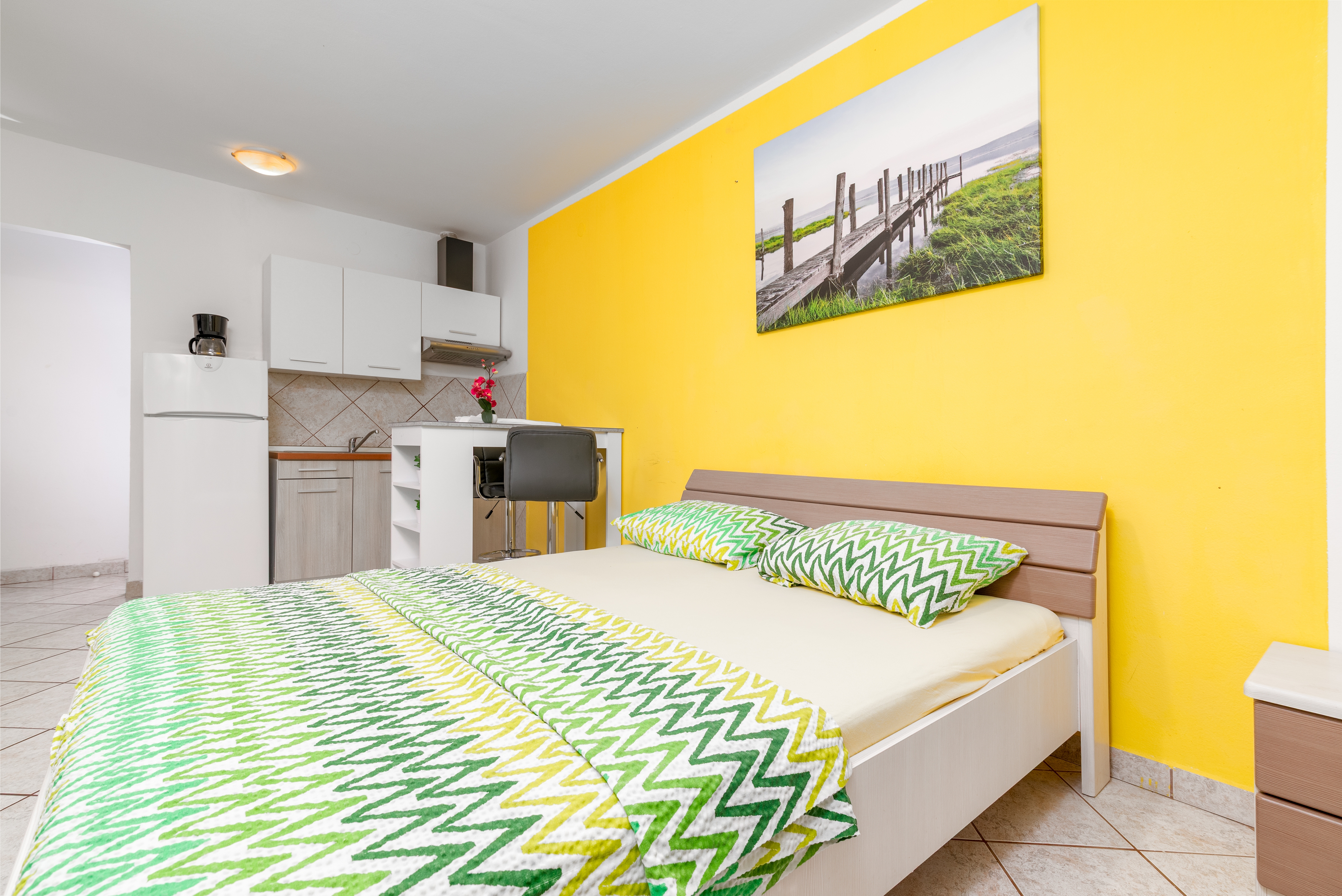 Studio flat can accommodate 2 guests. Beds are situated in 1 sleeping rooms, within 25m2. Guests can use a private terrace to enjoy the warm summer evenings. INCLUDED IN THE PRICE: tourist tax, final cleaning, air-conditioning, internet, baby cot, iron, ironing board, hairdryer. The availability of additional services for your chosen dates of stay, as well as their prices (if none are listed) must be checked ahead of time. Any additional services not shown in the price calculation are payable directly to the property owner and only if used by the visitor.