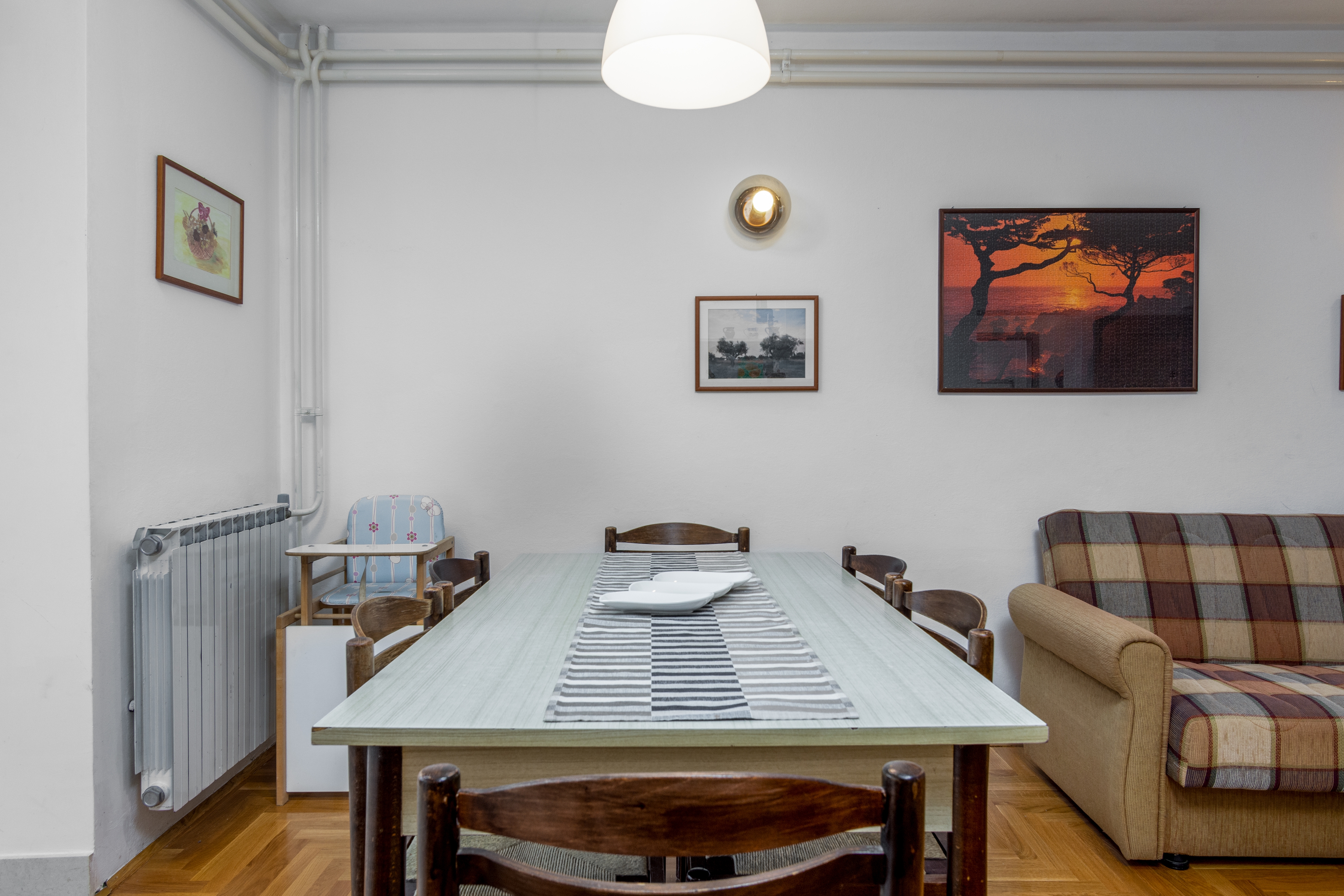 Apartment can accommodate 6 guests. Beds are situated in 2 sleeping rooms, but also in the living room, within 57m2. Guests can use a private terrace to enjoy the warm summer evenings. Food can be prepared using barbecue which is shared with other guests too. This accommodation unit welcomes pets at an additional charge. INCLUDED IN THE PRICE: tourist tax, final cleaning, parking, internet, laundry, hairdryer, portable barbecue. OPTIONAL ADDITIONAL COSTS: air-conditioning (€4.00 per night), central heating (€10.00 per night), boat (€100.00 per night), pets (€6.00 per night). The availability of additional services for your chosen dates of stay, as well as their prices (if none are listed) must be checked ahead of time. Any additional services not shown in the price calculation are payable directly to the property owner and only if used by the visitor. Discounts to the base price: free day 21=19 (for reservations of 21 or more days you get 2 free days for the stay until 31122026).