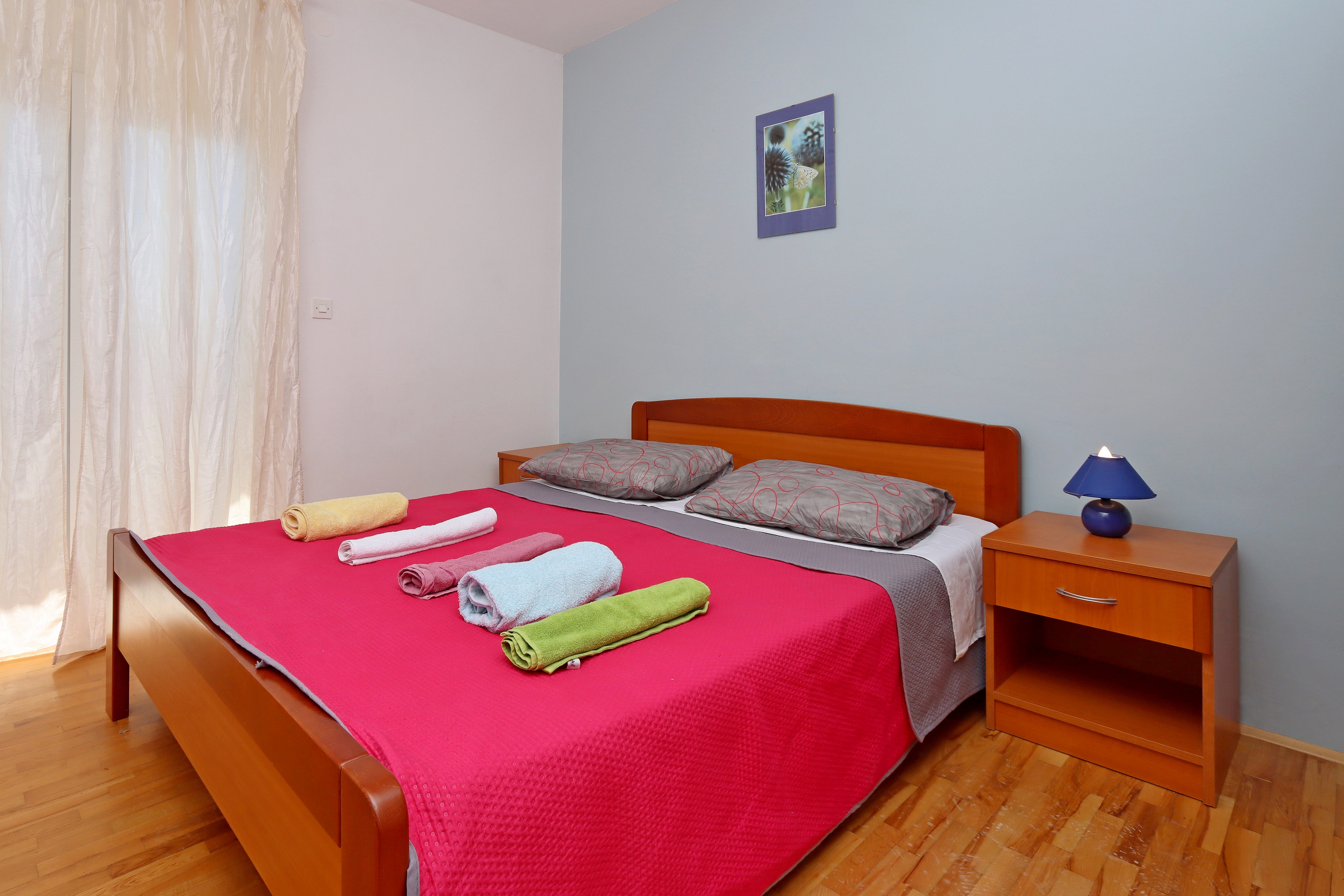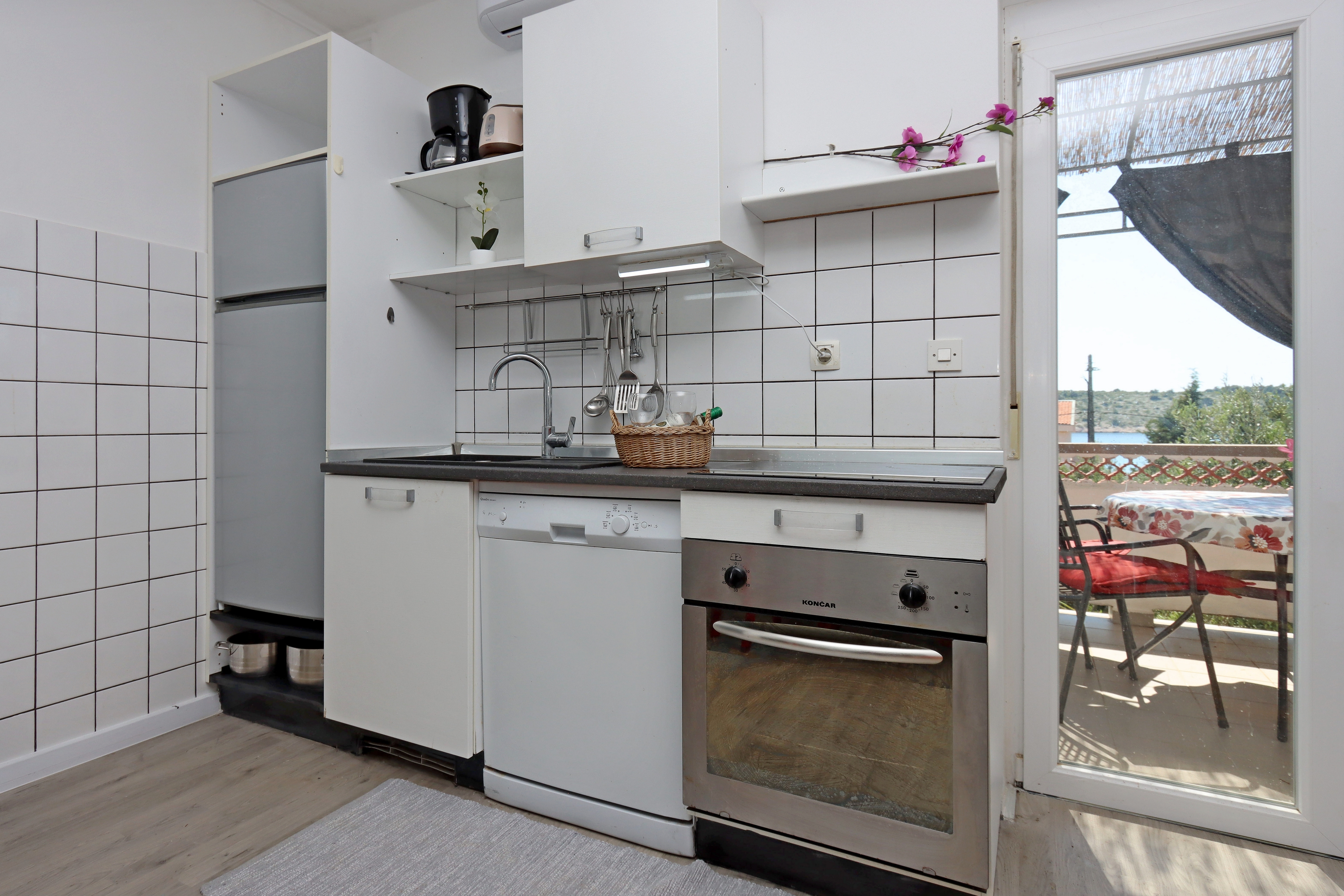 Apartment can accommodate 4 guests. Beds are situated in 2 sleeping rooms, within 40m2. Guests can use a private terrace to enjoy the warm summer evenings. The apartment offers the sea view. Food can be prepared using barbecue which is shared with other guests too. This accommodation unit welcomes pets at an additional charge. INCLUDED IN THE PRICE: tourist tax, final cleaning, air-conditioning, parking, internet, iron, hairdryer, sunshade. OBLIGATORY ADDITIONAL COSTS: short stay fee (surcharge depending on a number of booked nights: 30% - 1, 20% - 2, 10% - 3). OPTIONAL ADDITIONAL COSTS: boat mooring (€5.00 per night), pets (€7.00 per night), additional bed (€5.00 per night), 1 bed for children (€5.00 personnight). The availability of additional services for your chosen dates of stay, as well as their prices (if none are listed) must be checked ahead of time. Any additional services not shown in the price calculation are payable directly to the property owner and only if used by the visitor.