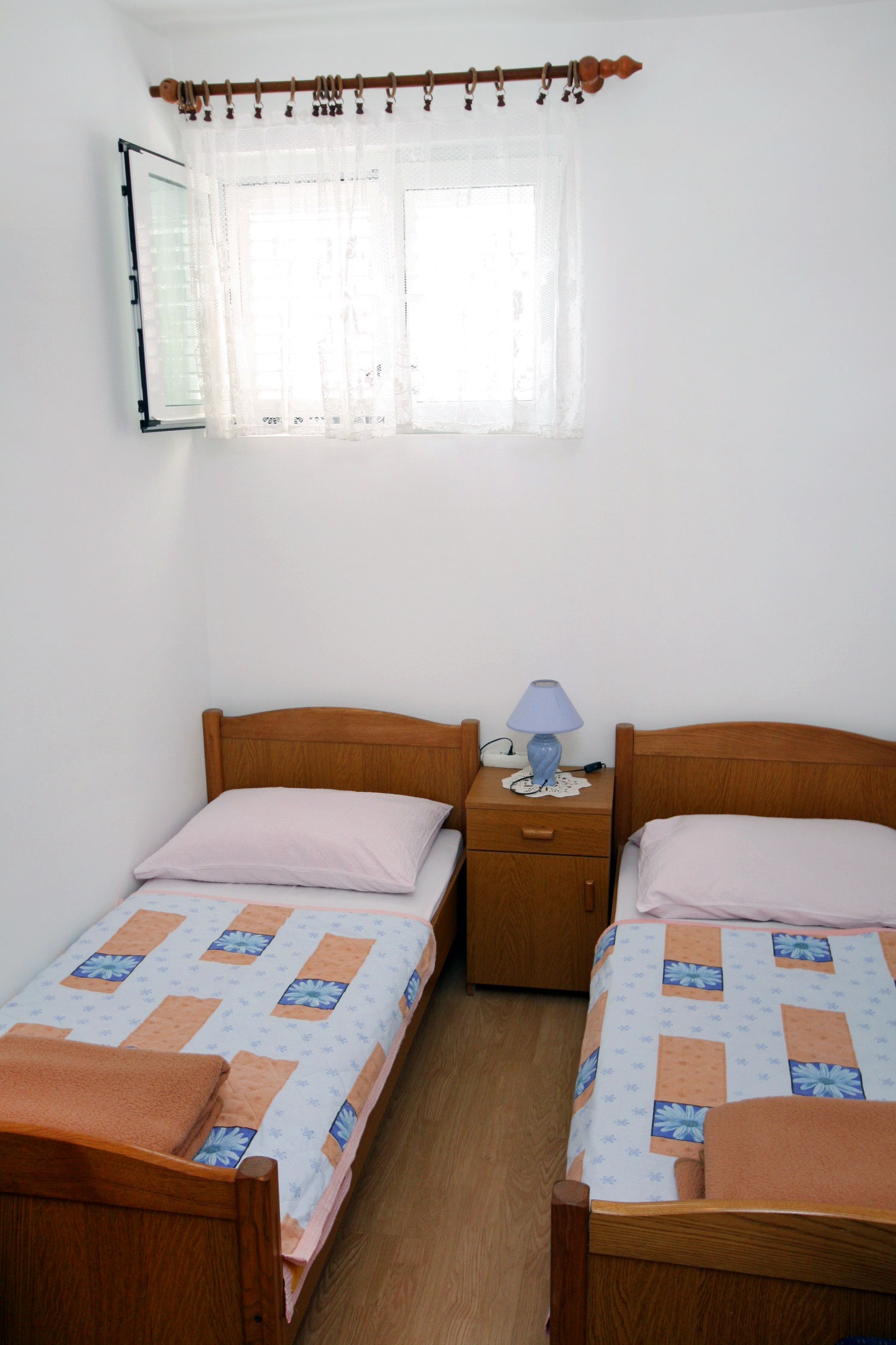 Apartment can accommodate 4 guests. Beds are situated in 2 sleeping rooms, within 44m2. Guests can use a private terrace to enjoy the warm summer evenings. The apartment offers the sea view. Food can be prepared using barbecue which is shared with other guests too. This accommodation unit welcomes pets at an additional charge. INCLUDED IN THE PRICE: tourist tax, final cleaning, air-conditioning, parking, internet, iron, hairdryer, portable barbecue, sunchairs. OBLIGATORY ADDITIONAL COSTS: short stay fee (surcharge depending on a number of booked nights: 30% - 1, 20% - 2, 10% - 3). OPTIONAL ADDITIONAL COSTS: laundry (€10.00 washing), boat (€180.00 per night), boat mooring (€15.00 per night), pets (€10.00 per night), additional bed (€10.00 per night). The availability of additional services for your chosen dates of stay, as well as their prices (if none are listed) must be checked ahead of time. Any additional services not shown in the price calculation are payable directly to the property owner and only if used by the visitor.