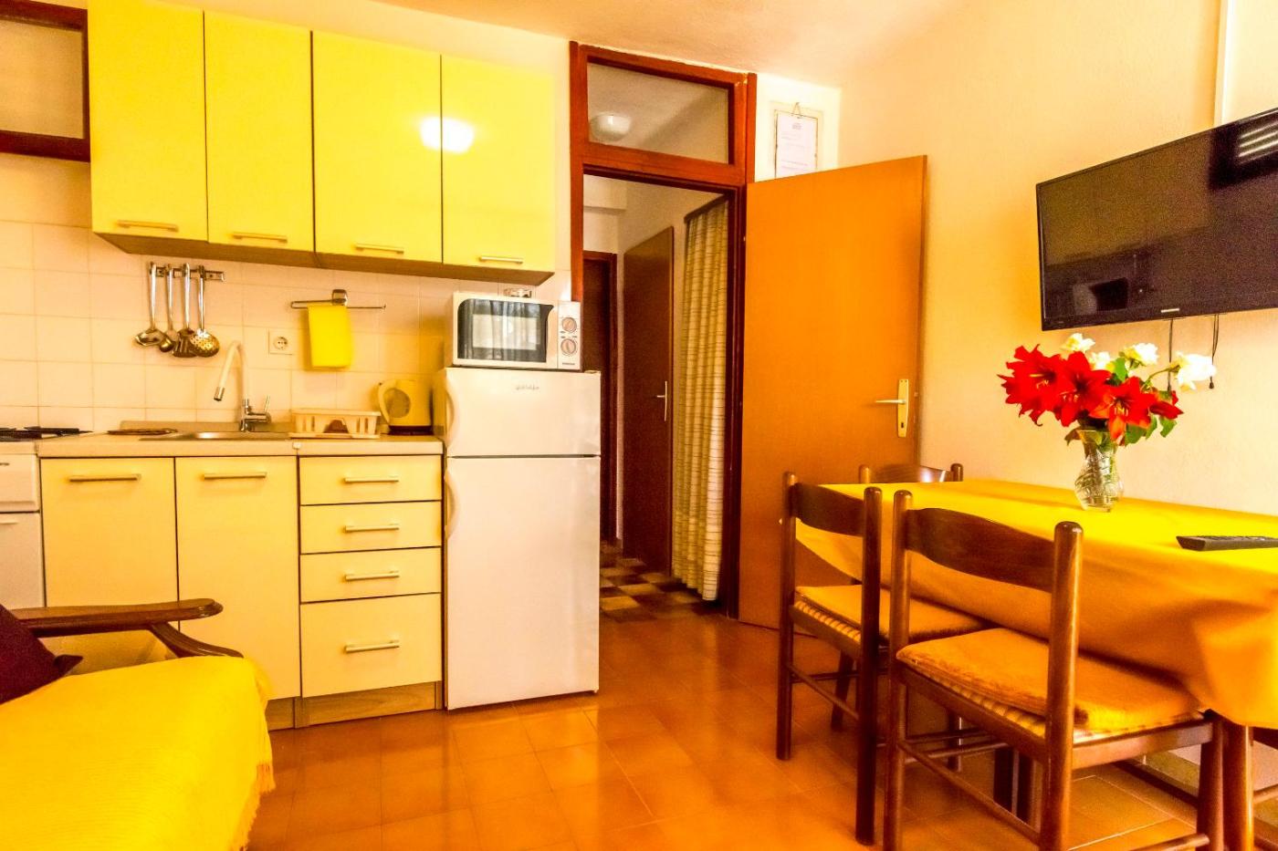One-Bedroom Apartment. This apartment comes with 1 bedroom, kitchenette, a terrace and 1 bathroom with a hairdryer. Guests will find a stovetop, a refrigerator, kitchenware and a microwave in the kitchenette. The apartment also includes a barbecue. Boasting a balcony with sea views, this apartment also features air conditioning and a TV with satellite channels. The unit has 1 bed.