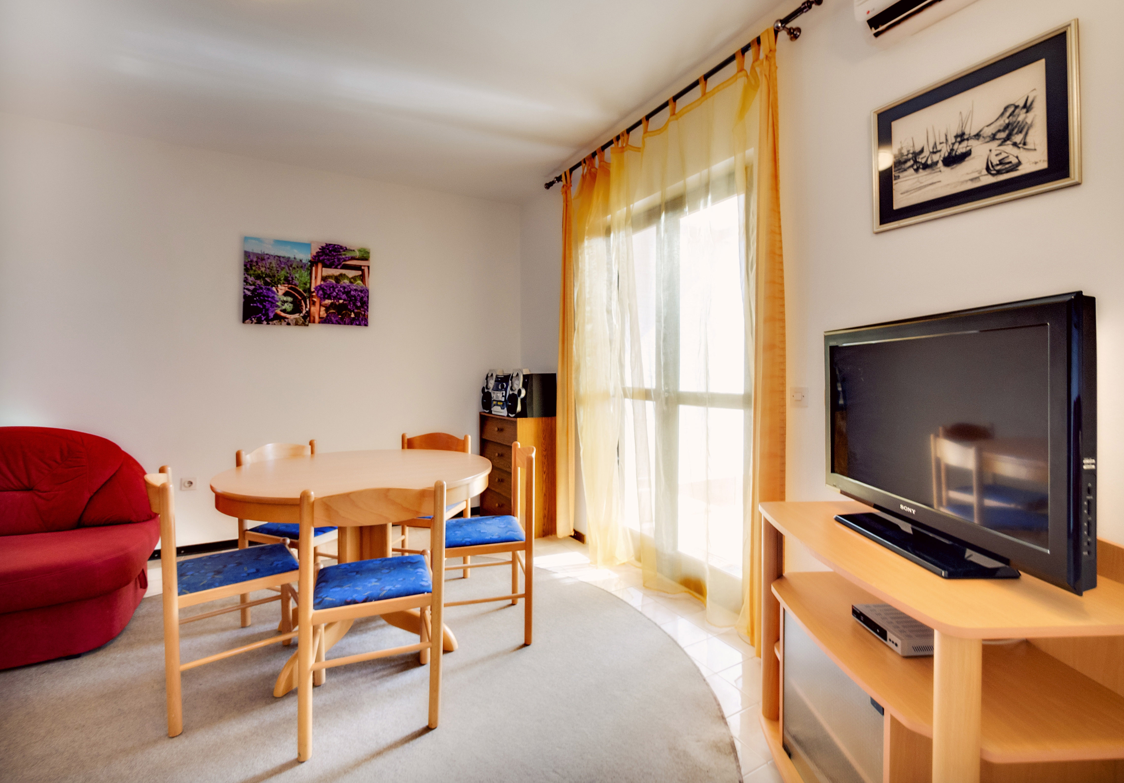 Apartment can accommodate 6 guests. Beds are situated in 3 sleeping rooms, within 54m2. Guests can use a private terrace to enjoy the warm summer evenings. Food can be prepared using barbecue which is shared with other guests too. INCLUDED IN THE PRICE: tourist tax, final cleaning, air-conditioning, parking, internet, iron, ironing board, hairdryer, sunshade, sunchairs. OBLIGATORY ADDITIONAL COSTS: short stay fee (surcharge depending on a number of booked nights: 30% - 1, 20% - 2, 10% - 3). The availability of additional services for your chosen dates of stay, as well as their prices (if none are listed) must be checked ahead of time. Any additional services not shown in the price calculation are payable directly to the property owner and only if used by the visitor.