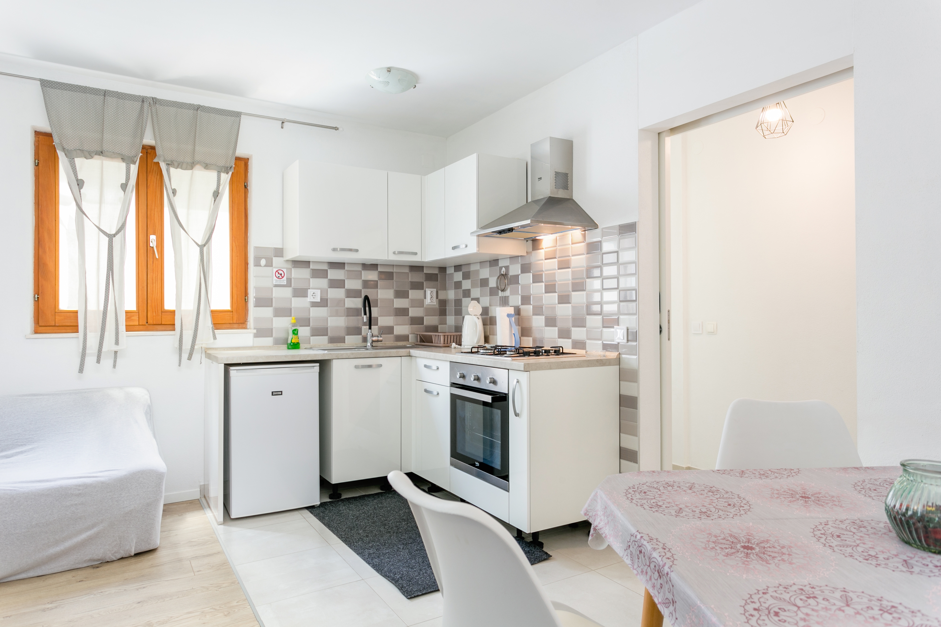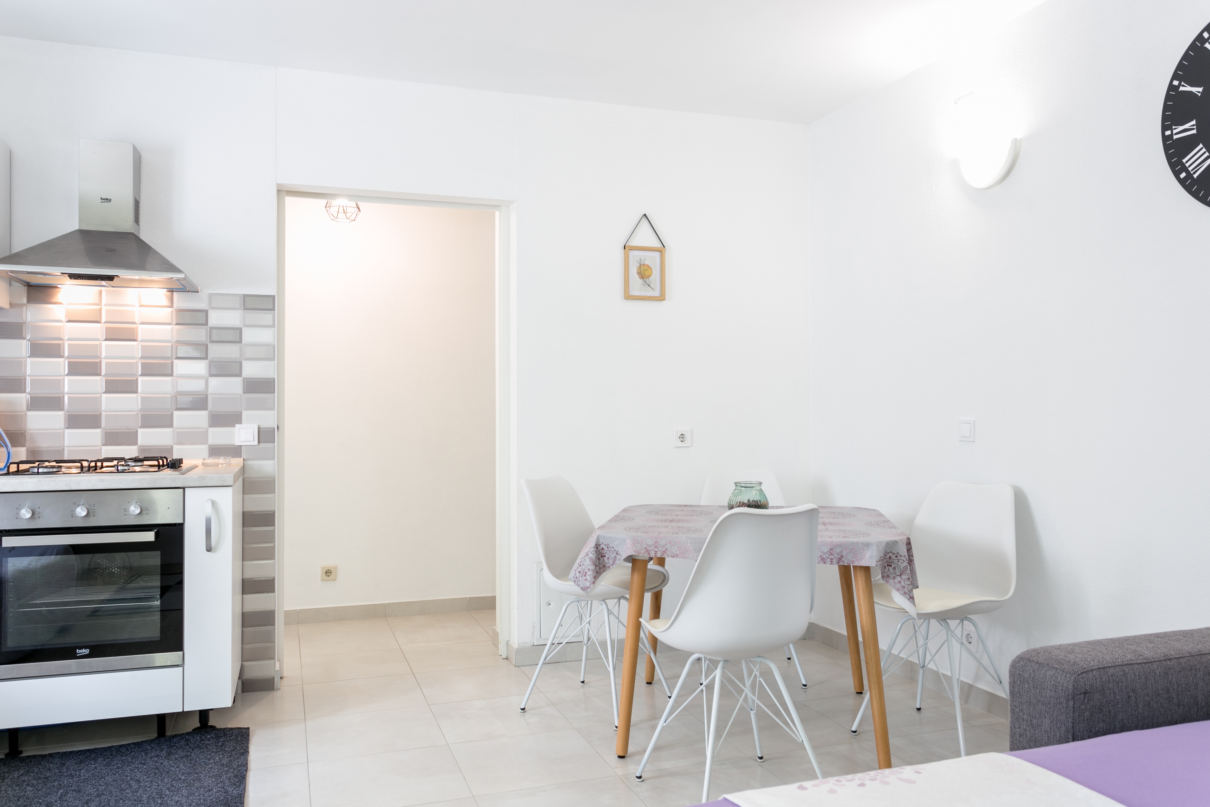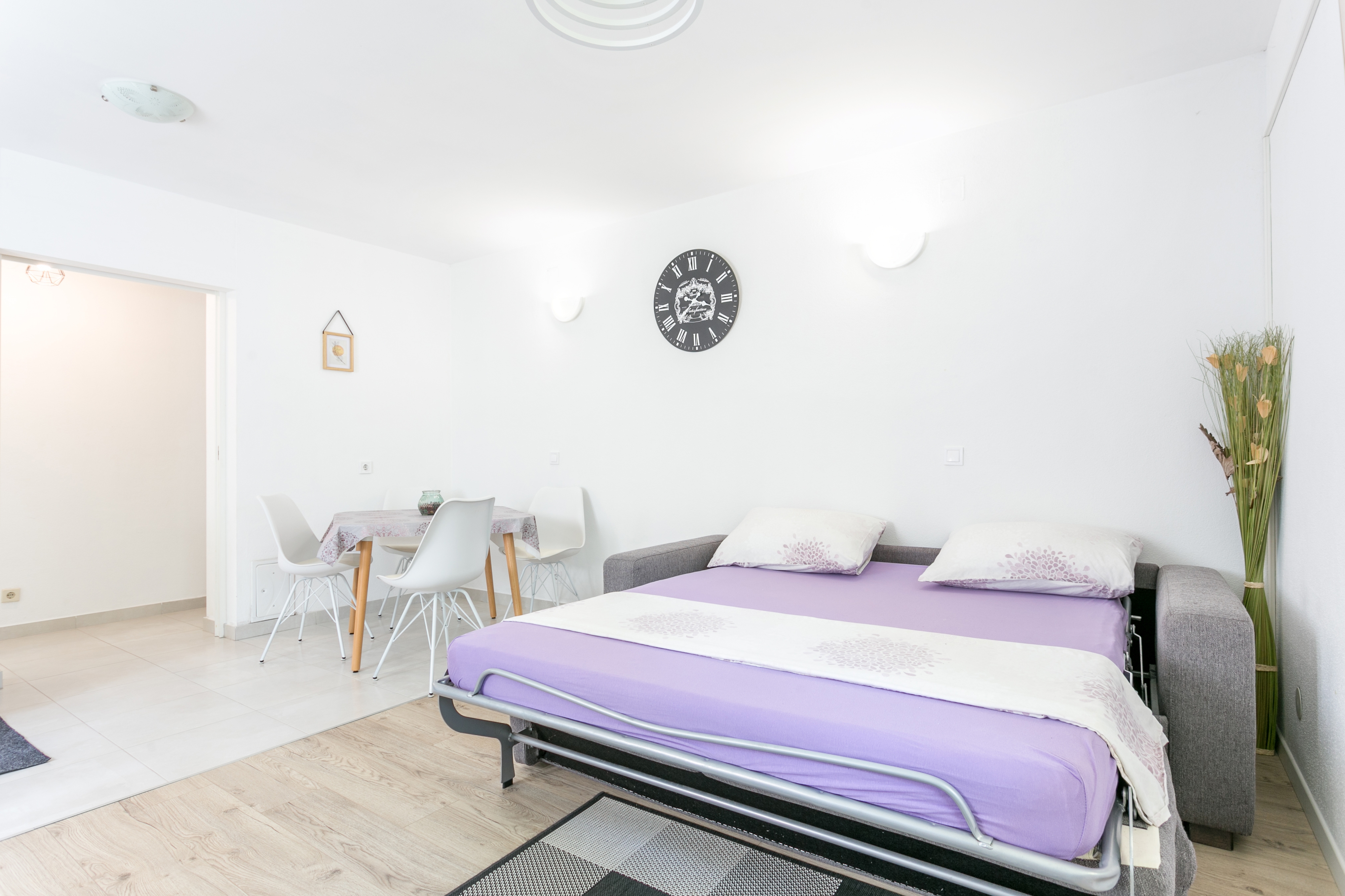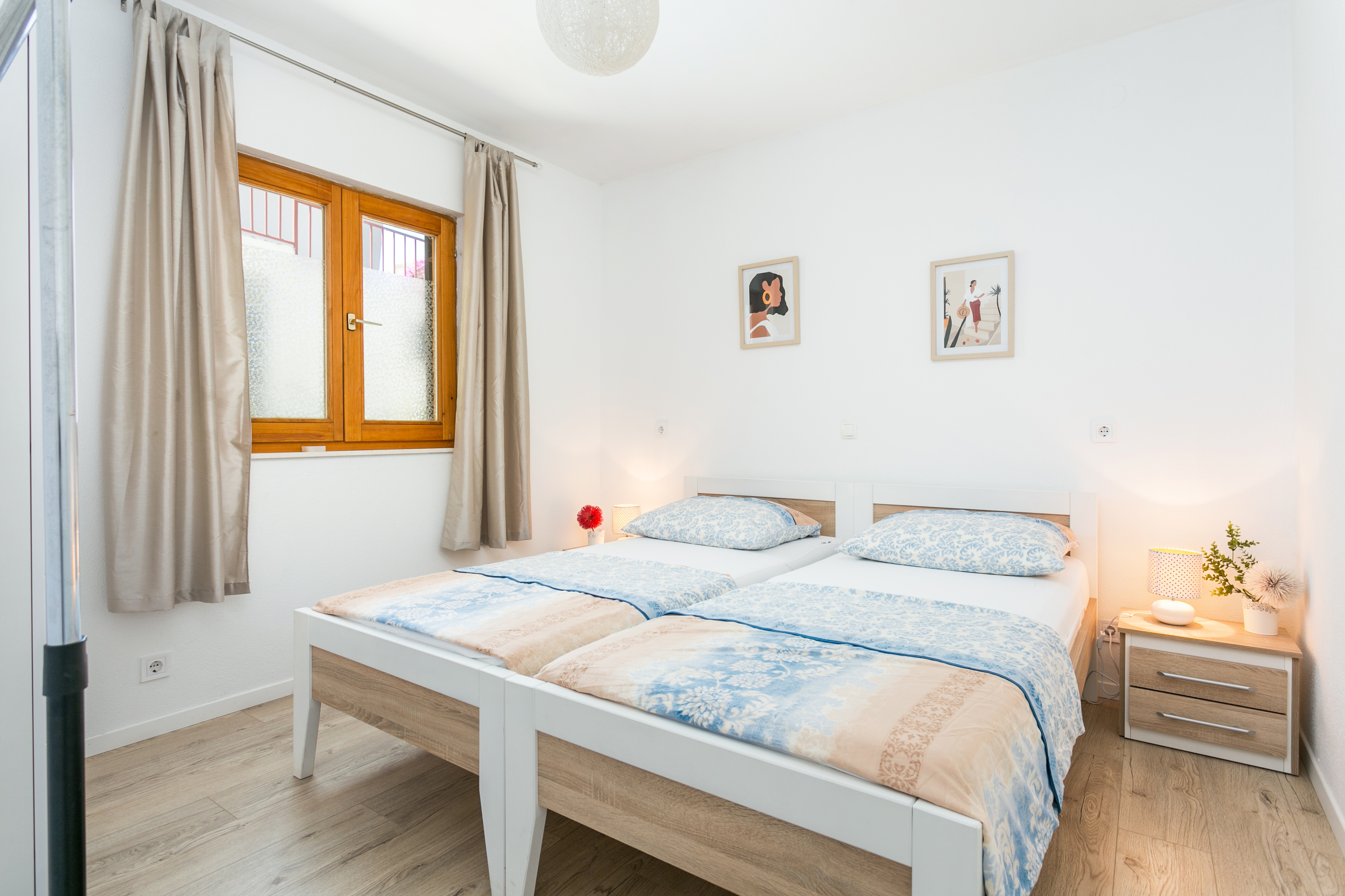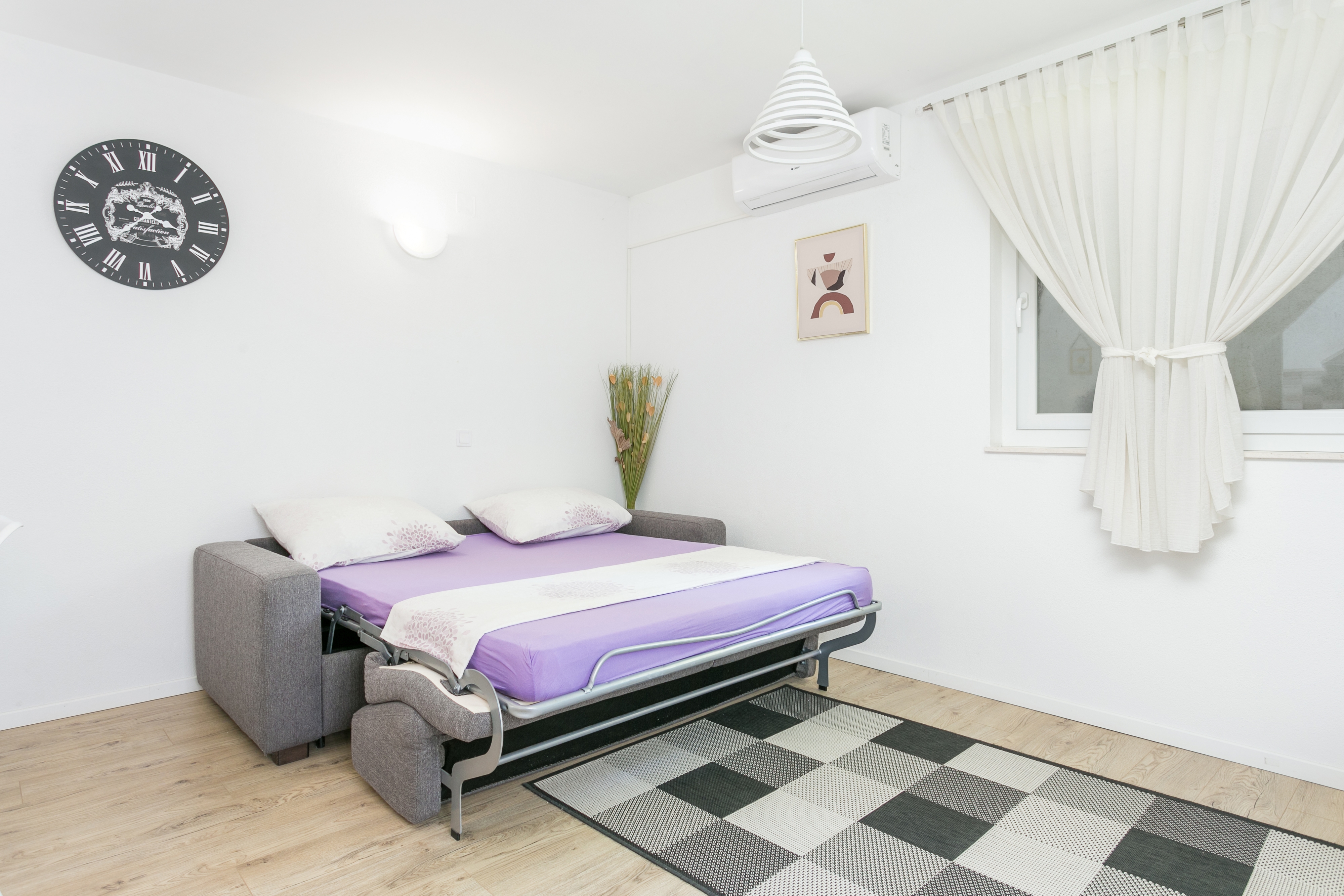 Apartment can accommodate 4 guests. Beds are situated in 1 sleeping rooms, but also in the living room, within 45m2. Guests can use a private terrace to enjoy the warm summer evenings. INCLUDED IN THE PRICE: tourist tax, final cleaning, air-conditioning, parking, internet, iron, ironing board, hairdryer. OBLIGATORY ADDITIONAL COSTS: short stay fee (surcharge depending on a number of booked nights: 30% - 1, 20% - 2, 10% - 3). The availability of additional services for your chosen dates of stay, as well as their prices (if none are listed) must be checked ahead of time. Any additional services not shown in the price calculation are payable directly to the property owner and only if used by the visitor.