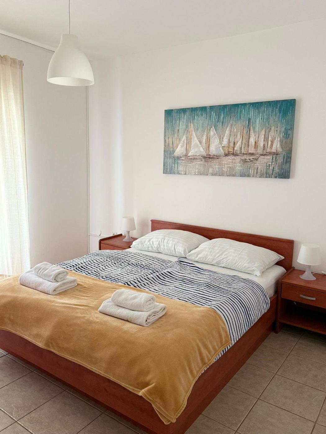 Apartment with Sea View. Featuring a private entrance, this air-conditioned apartment is comprised of a kitchen, 2 bedrooms and 1 bathroom with a walk-in shower and a bath. Guests will find a stovetop, a refrigerator, kitchenware and a microwave in the fully equipped kitchen. The apartment also has a barbecue. Boasting a terrace with sea views, this apartment also offers a seating area and a flat-screen TV with satellite channels. The unit offers 3 beds.