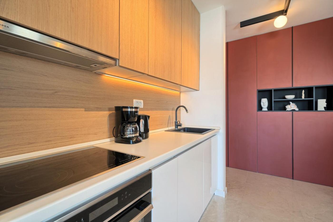Two-Bedroom Apartment. This spacious apartment is comprised of 1 living room, 2 separate bedrooms and 1 bathroom with a shower and a hairdryer. In the fully equipped kitchen, guests will find a stovetop, a refrigerator, a dishwasher and kitchenware. The air-conditioned apartment offers a flat-screen TV with cable channels, a washing machine, a coffee machine, a dining area as well as sea views. The unit offers 3 beds.