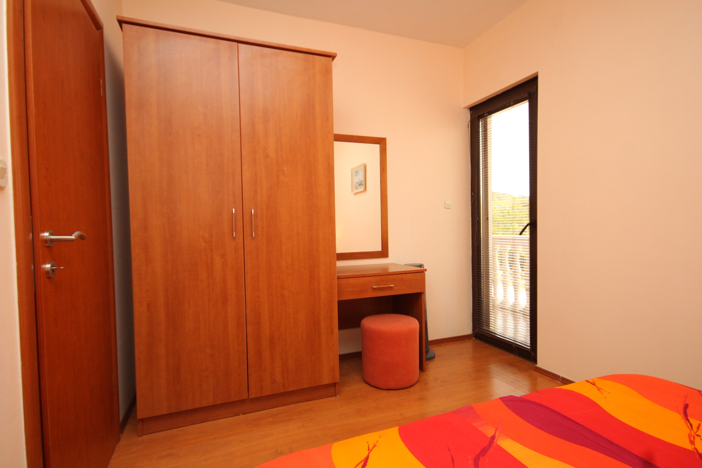 Apartment can accommodate 4 guests. Beds are situated in 2 sleeping rooms, within 43m2. Guests can use a private balcony to enjoy the warm summer evenings. The apartment offers the sea view. Food can be prepared using barbecue which is shared with other guests too. This accommodation unit welcomes pets at an additional charge. INCLUDED IN THE PRICE: tourist tax, final cleaning, air-conditioning, parking, internet, laundry, iron, ironing board, hairdryer. OBLIGATORY ADDITIONAL COSTS: short stay fee (surcharge depending on a number of booked nights: 30% - 1, 20% - 2, 10% - 3). OPTIONAL ADDITIONAL COSTS: pets (€5.00 per night). The availability of additional services for your chosen dates of stay, as well as their prices (if none are listed) must be checked ahead of time. Any additional services not shown in the price calculation are payable directly to the property owner and only if used by the visitor. Discounts to the base price: free day 28=25 (for stays of 28 days or more, we give you 3 days free of charge for the stay until 31122026).