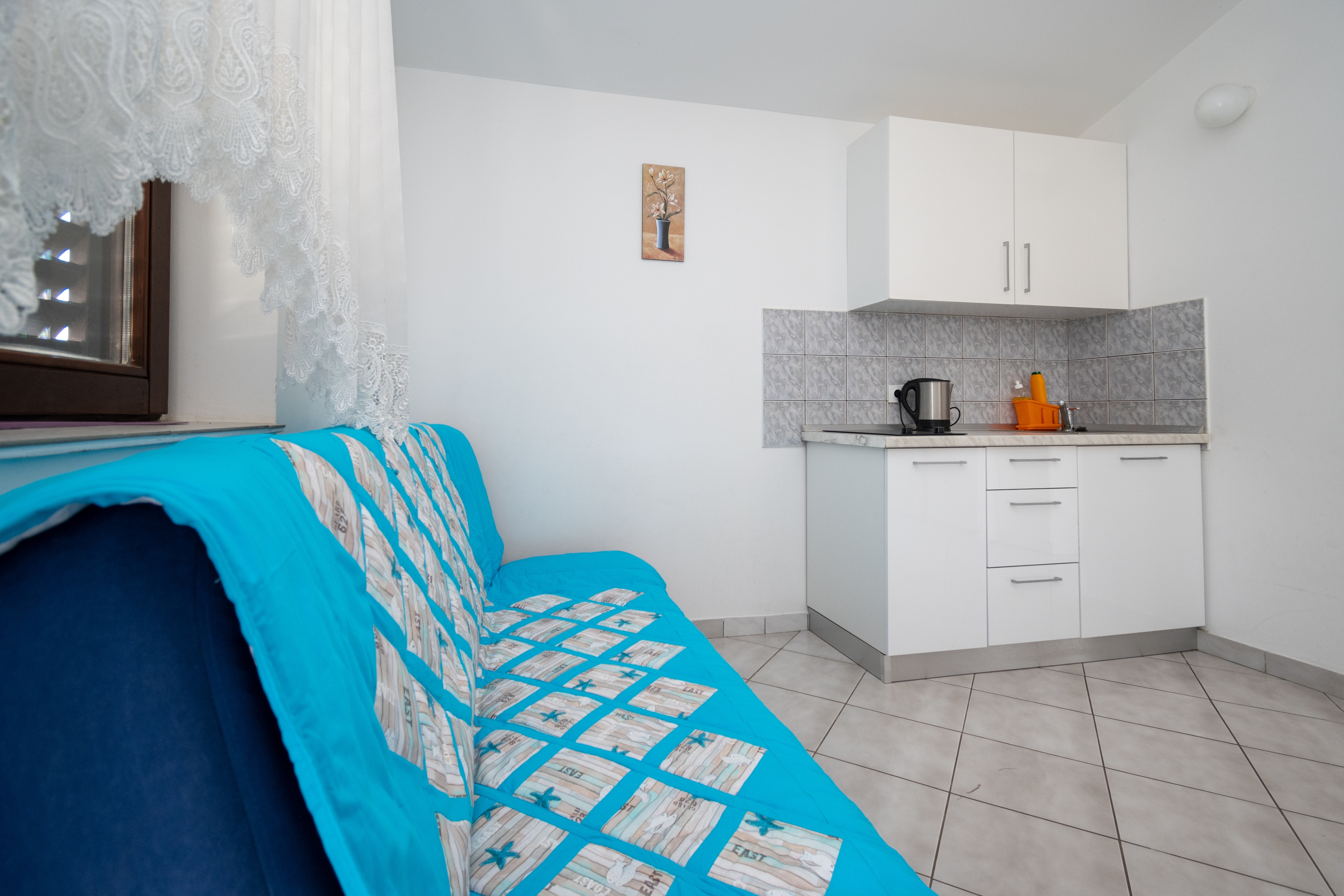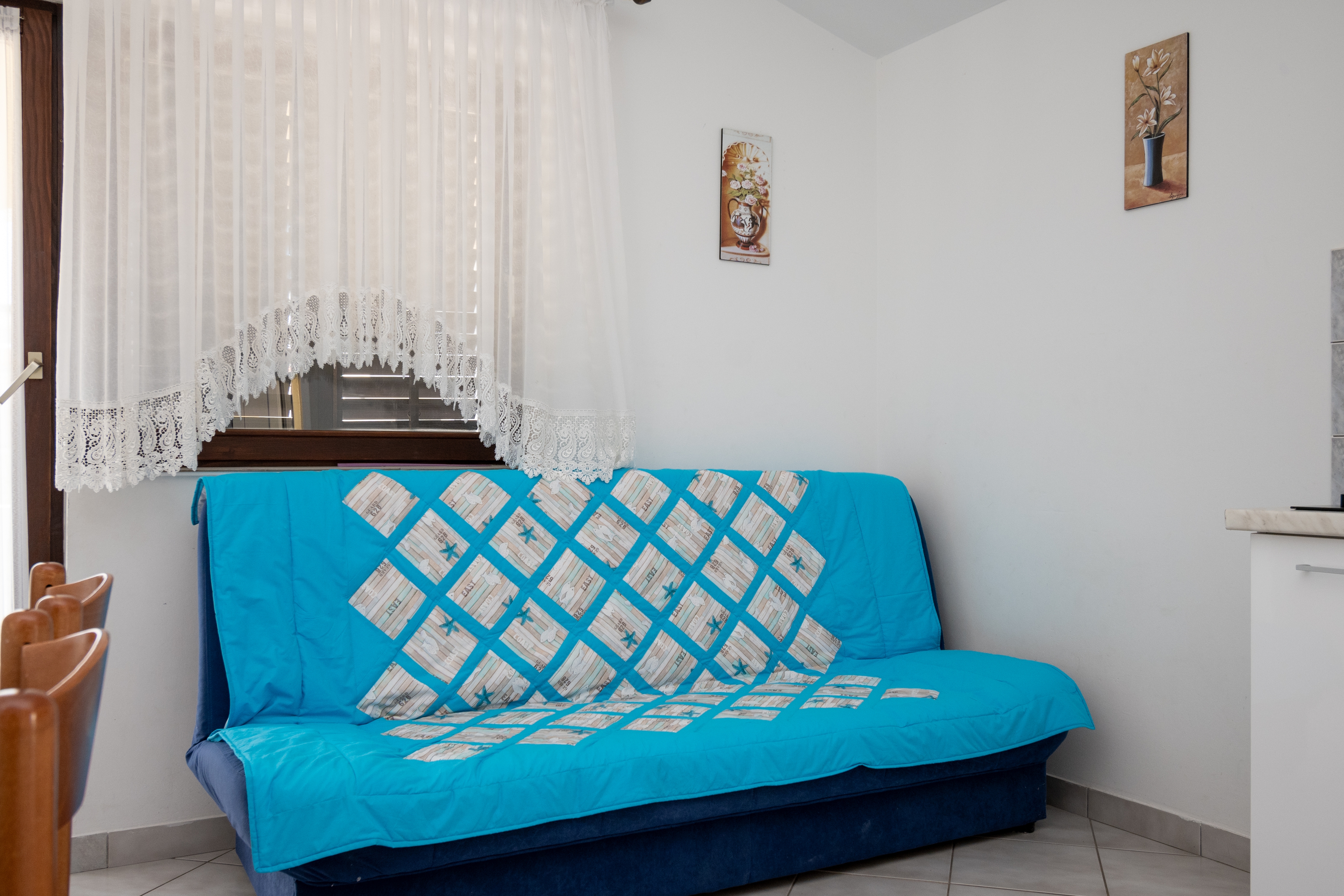 Apartment can accommodate 4 guests. Beds are situated in 1 sleeping rooms, but also in the dining room, within 26m2. Guests can use a private terrace to enjoy the warm summer evenings. Food can be prepared using barbecue which is shared with other guests too. INCLUDED IN THE PRICE: tourist tax, final cleaning, air-conditioning, parking, internet. OBLIGATORY ADDITIONAL COSTS: short stay fee (surcharge depending on a number of booked nights: 30% - 1, 20% - 2, 10% - 3). The availability of additional services for your chosen dates of stay, as well as their prices (if none are listed) must be checked ahead of time. Any additional services not shown in the price calculation are payable directly to the property owner and only if used by the visitor. Discounts to the base price: free day 14=13 (for reservations of 14 or more days you get one free day for the stay until 31122026).