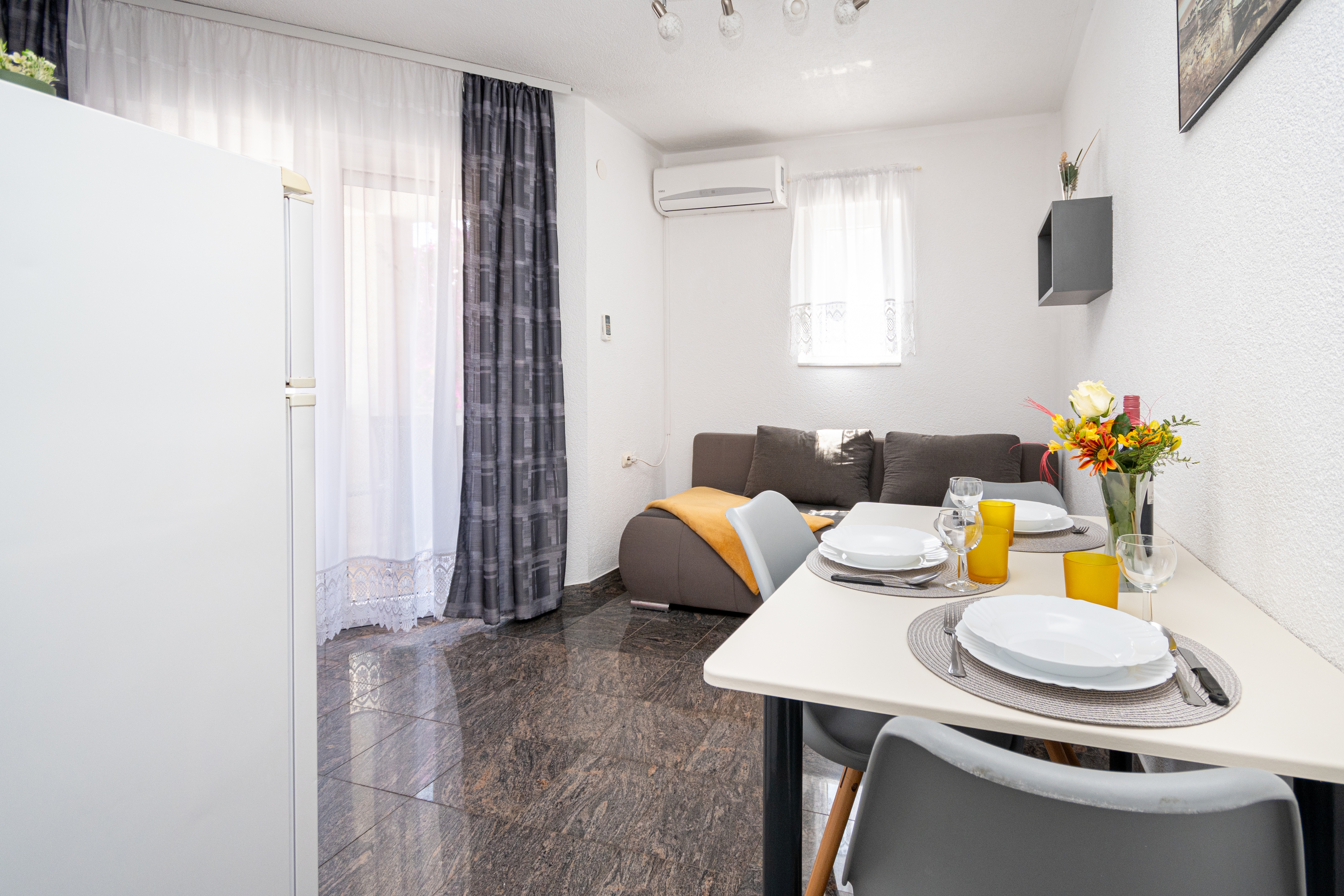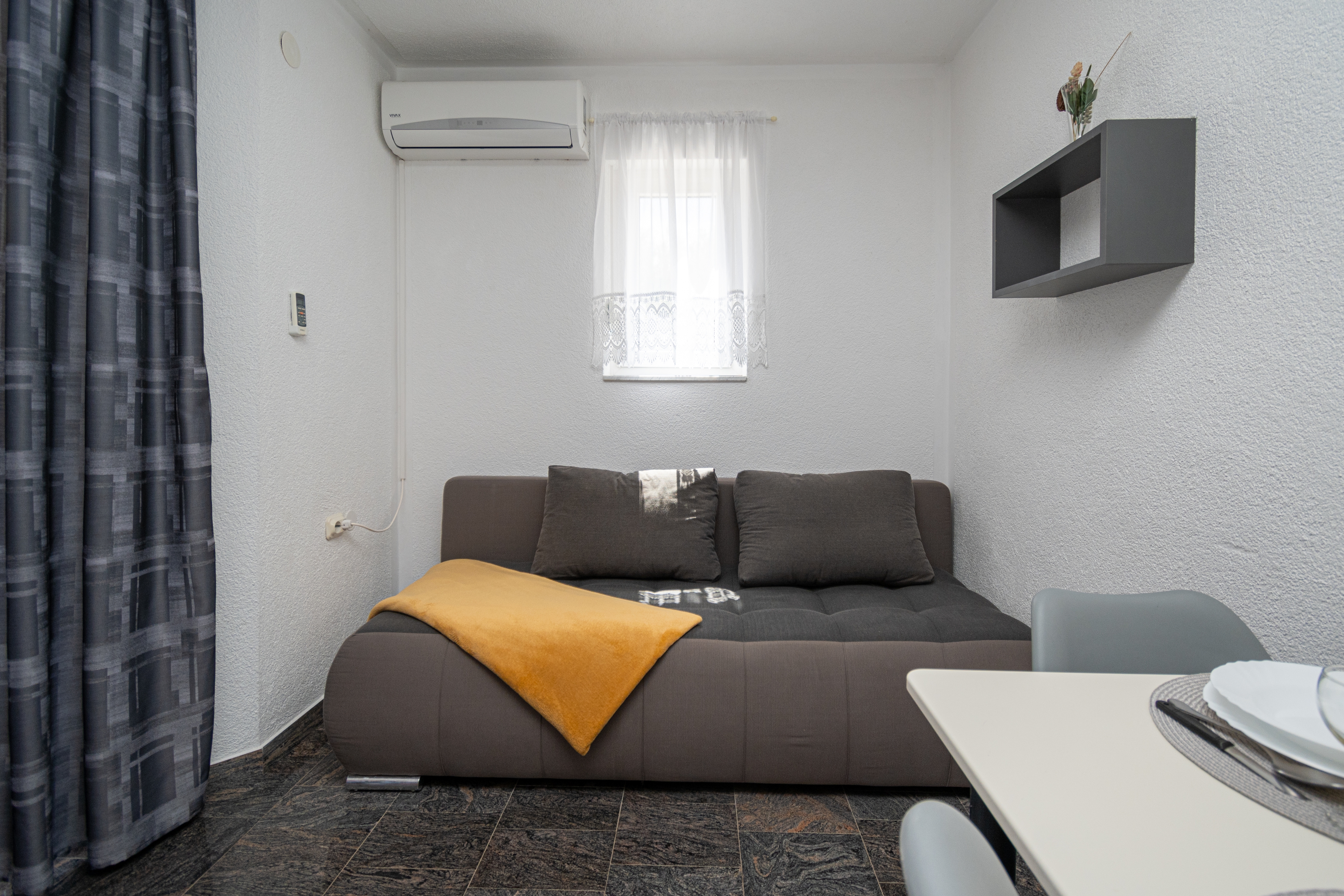 Apartment can accommodate 7 guests. Beds are situated in 3 sleeping rooms, but also in the living room, within 73m2. Guests can use a private terrace to enjoy the warm summer evenings. Food can be prepared using barbecue which is shared with other guests too. INCLUDED IN THE PRICE: tourist tax, final cleaning, air-conditioning, parking, internet. OBLIGATORY ADDITIONAL COSTS: short stay fee (surcharge depending on a number of booked nights: 30% - 1, 20% - 2, 10% - 3). The availability of additional services for your chosen dates of stay, as well as their prices (if none are listed) must be checked ahead of time. Any additional services not shown in the price calculation are payable directly to the property owner and only if used by the visitor.