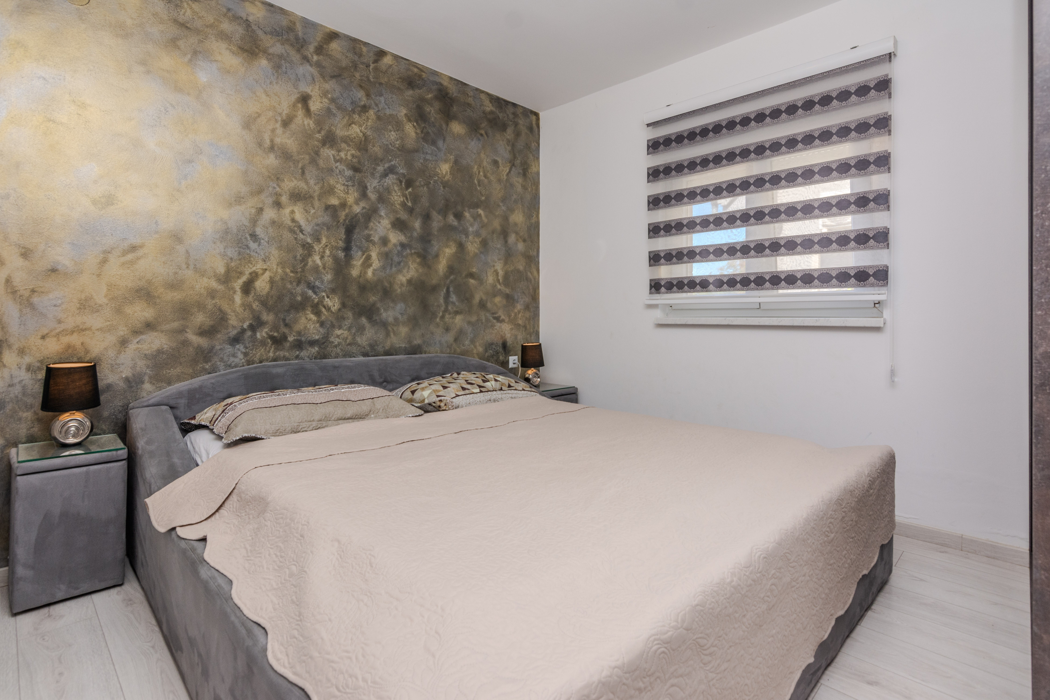 Apartment can accommodate 6 guests. Beds are situated in 2 sleeping rooms, but also in the living room, within 47m2. Guests can use a private terrace to enjoy the warm summer evenings. Food can be prepared using barbecue which is shared with other guests too. INCLUDED IN THE PRICE: tourist tax, final cleaning, air-conditioning, parking, internet, laundry, baby cot. OBLIGATORY ADDITIONAL COSTS: short stay fee (surcharge depending on a number of booked nights: 30% - 1, 20% - 2, 10% - 3). The availability of additional services for your chosen dates of stay, as well as their prices (if none are listed) must be checked ahead of time. Any additional services not shown in the price calculation are payable directly to the property owner and only if used by the visitor.