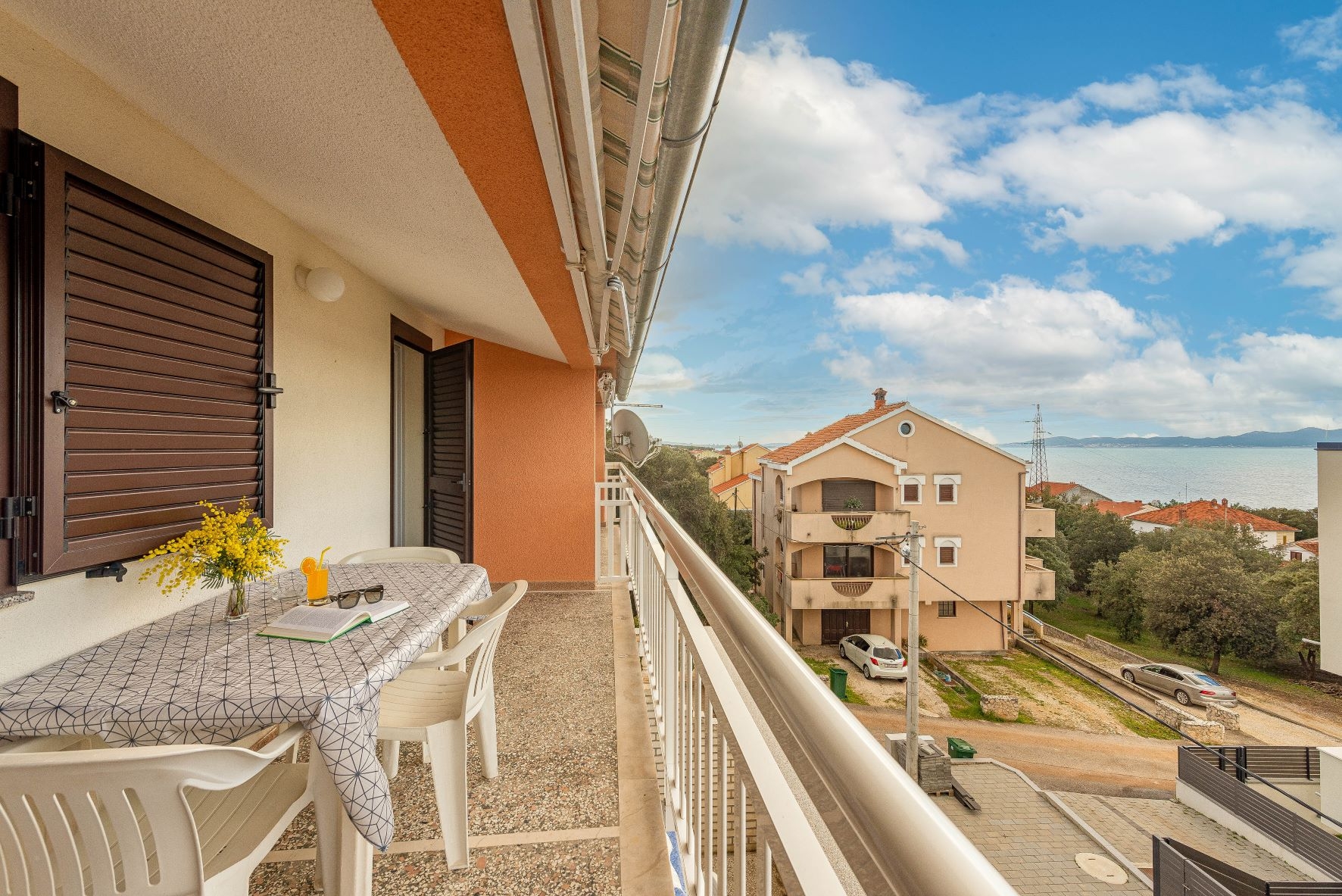 Apartment can accommodate 5 guests. Beds are situated in 2 sleeping rooms, but also in the dining room, within 42m2. Guests can use a private balcony to enjoy the warm summer evenings. The apartment offers the sea view. Food can be prepared using barbecue which is shared with other guests too. INCLUDED IN THE PRICE: tourist tax, final cleaning, air-conditioning, parking, internet. OPTIONAL ADDITIONAL COSTS: additional bed (€10.00 per night). The availability of additional services for your chosen dates of stay, as well as their prices (if none are listed) must be checked ahead of time. Any additional services not shown in the price calculation are payable directly to the property owner and only if used by the visitor. Discounts to the base price: free day 14=13 (for reservations of 14 or more days you get one free day for the stay until 31122026).