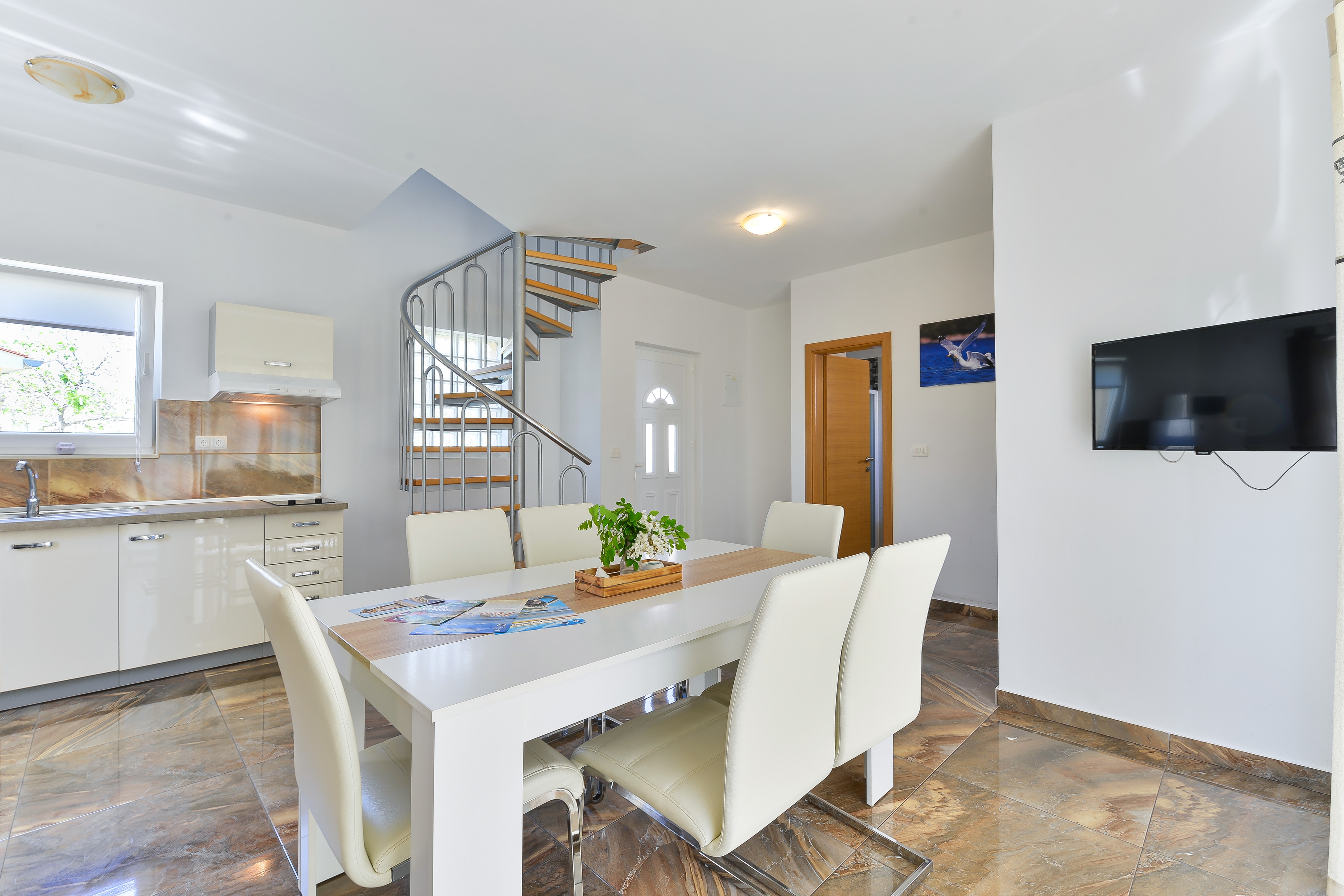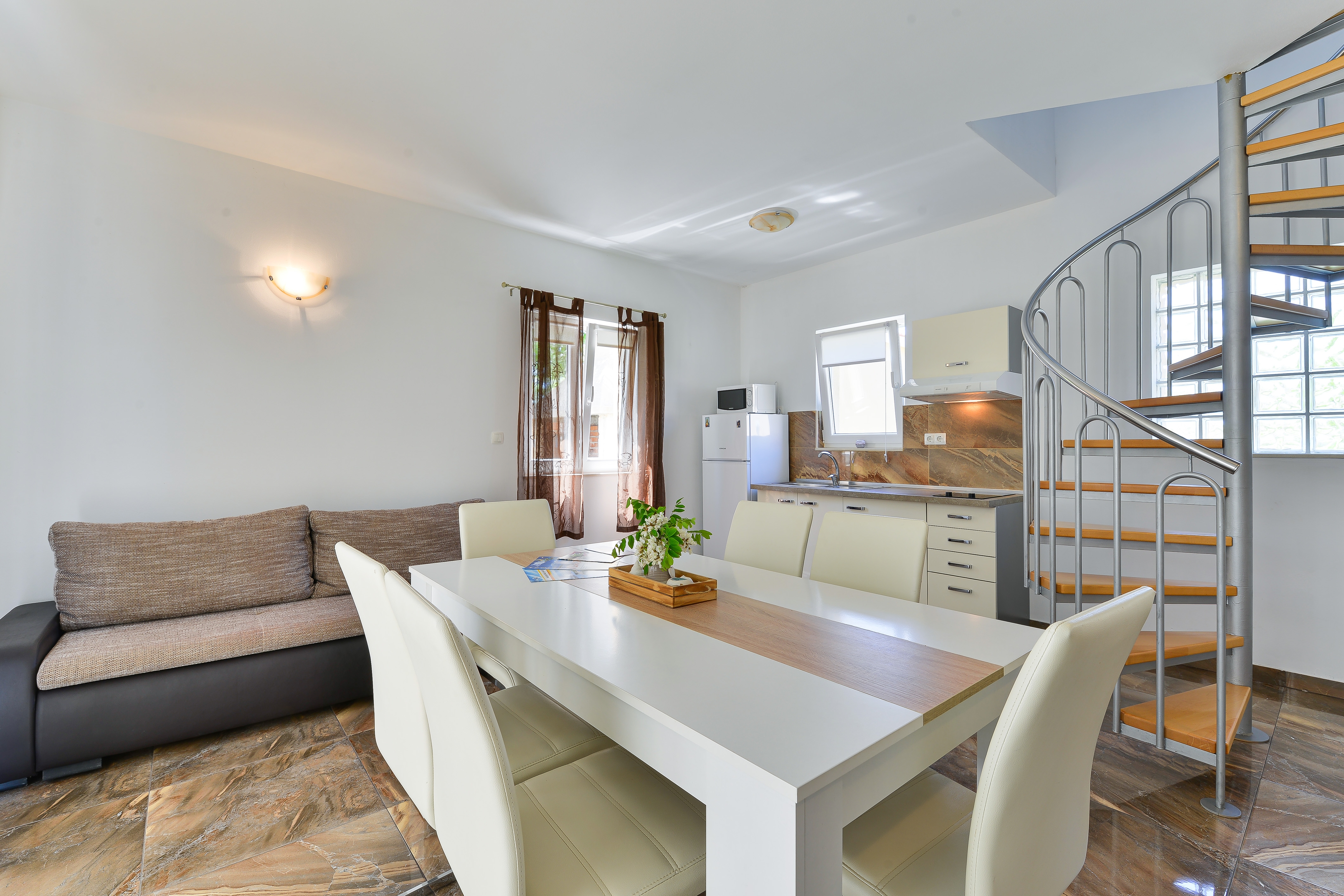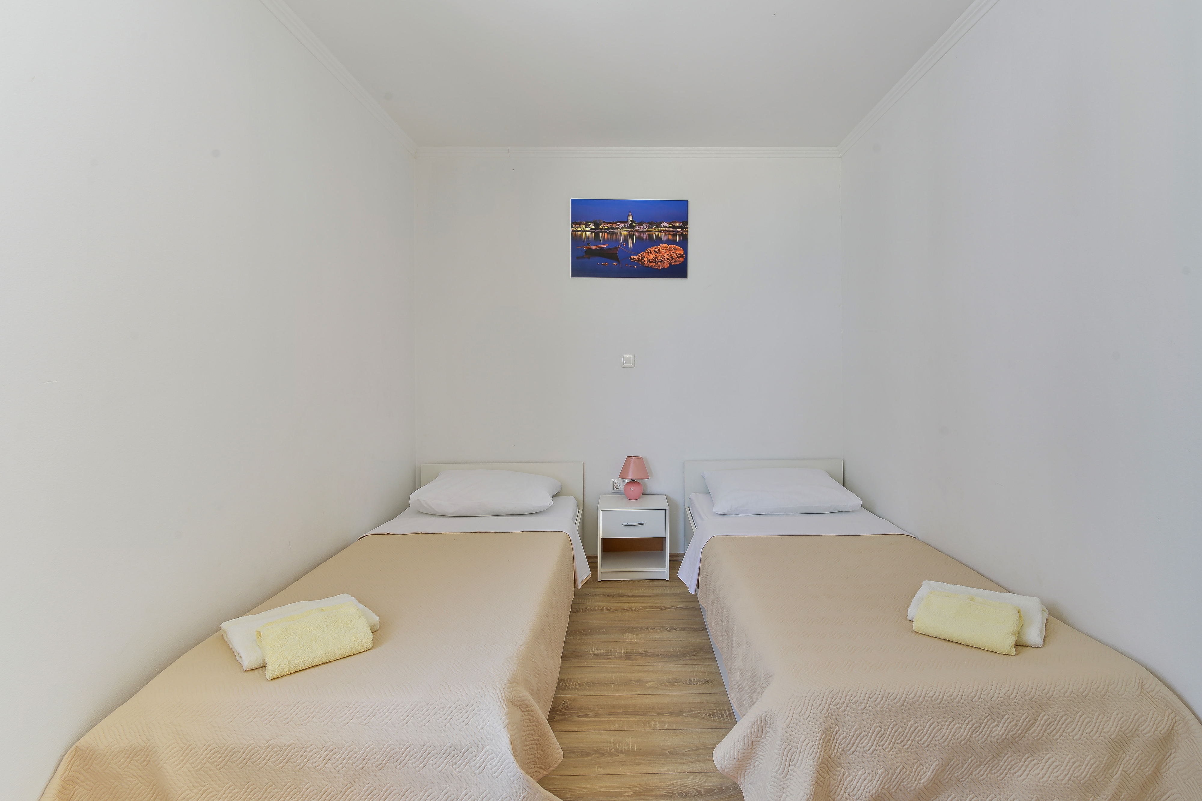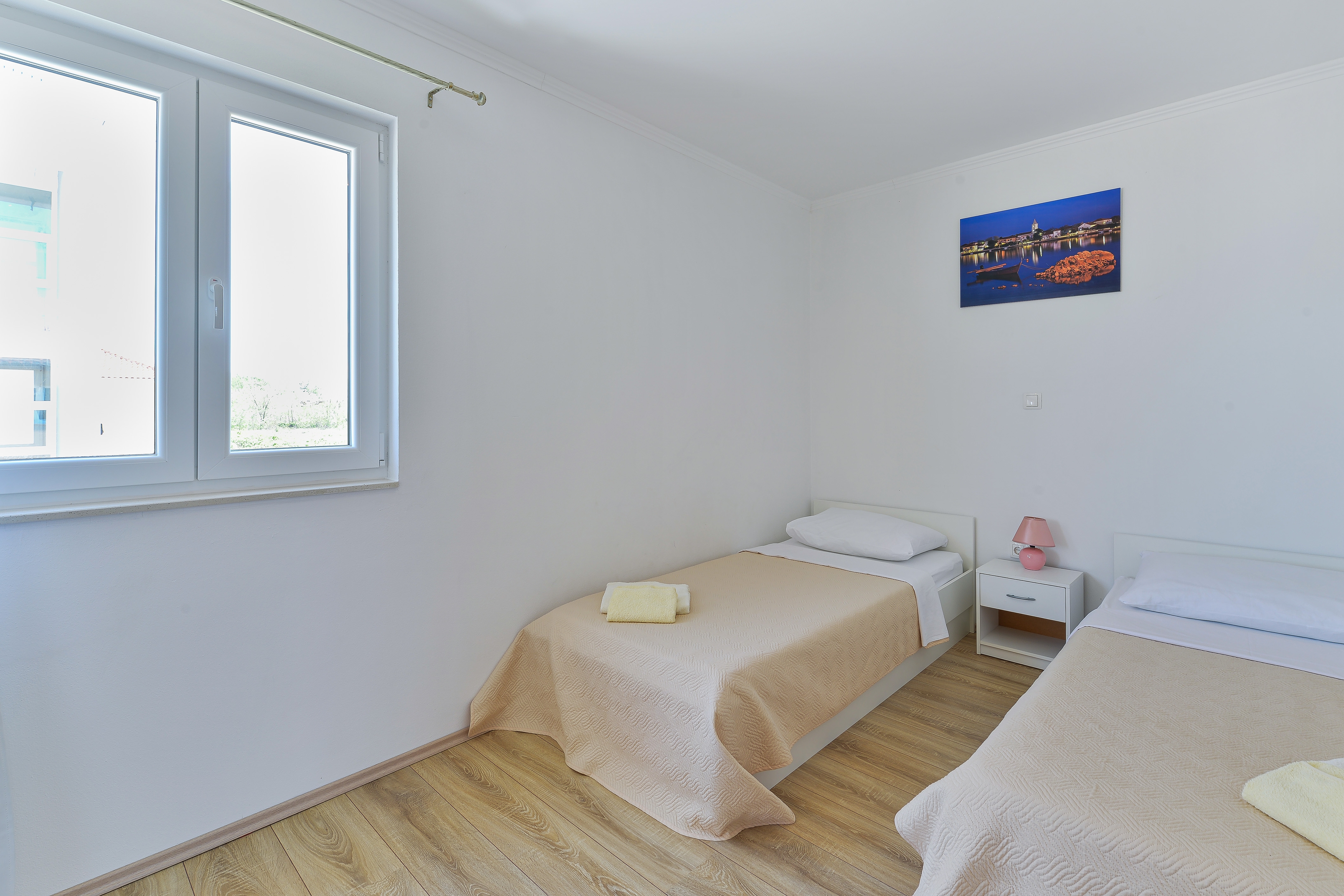 Apartment can accommodate 5 guests. Beds are situated in 2 sleeping rooms, but also in the dining room, within 57m2. Guests can use a private balcony to enjoy the warm summer evenings. The apartment offers the sea view. Food can be prepared using barbecue which is shared with other guests too. This accommodation unit welcomes pets at an additional charge. INCLUDED IN THE PRICE: tourist tax, final cleaning, air-conditioning, parking, internet. OPTIONAL ADDITIONAL COSTS: laundry (€10.00 washing), pets (€8.00 per night). The availability of additional services for your chosen dates of stay, as well as their prices (if none are listed) must be checked ahead of time. Any additional services not shown in the price calculation are payable directly to the property owner and only if used by the visitor.