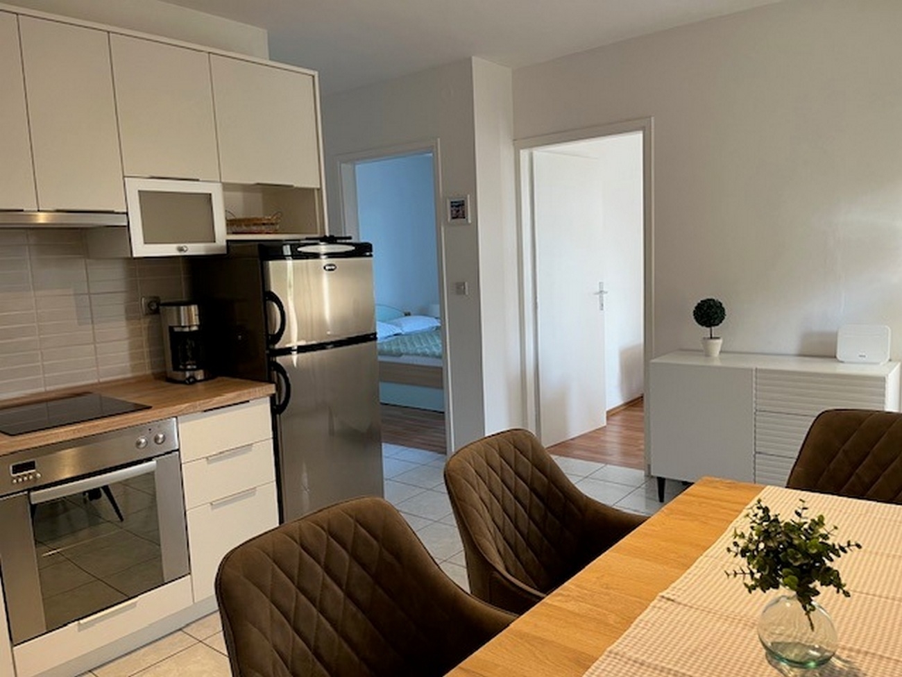 Apartment can accommodate 4 guests. Beds are situated in 2 sleeping rooms, within 36m2. Guests can use a private terrace to enjoy the warm summer evenings. The apartment offers the sea view. Food can be prepared using barbecue which is shared with other guests too. This accommodation unit welcomes pets at an additional charge. Other guests or hosts pass through the terrace of the booked accommodation unit. INCLUDED IN THE PRICE: tourist tax, final cleaning, parking, internet, hairdryer. OBLIGATORY ADDITIONAL COSTS: short stay fee (surcharge depending on a number of booked nights: 30% - 1, 20% - 2, 10% - 3). OPTIONAL ADDITIONAL COSTS: air-conditioning (€0.62 per hour), boat (€250.00 per night), pets (€5.00 per night). The availability of additional services for your chosen dates of stay, as well as their prices (if none are listed) must be checked ahead of time. Any additional services not shown in the price calculation are payable directly to the property owner and only if used by the visitor.