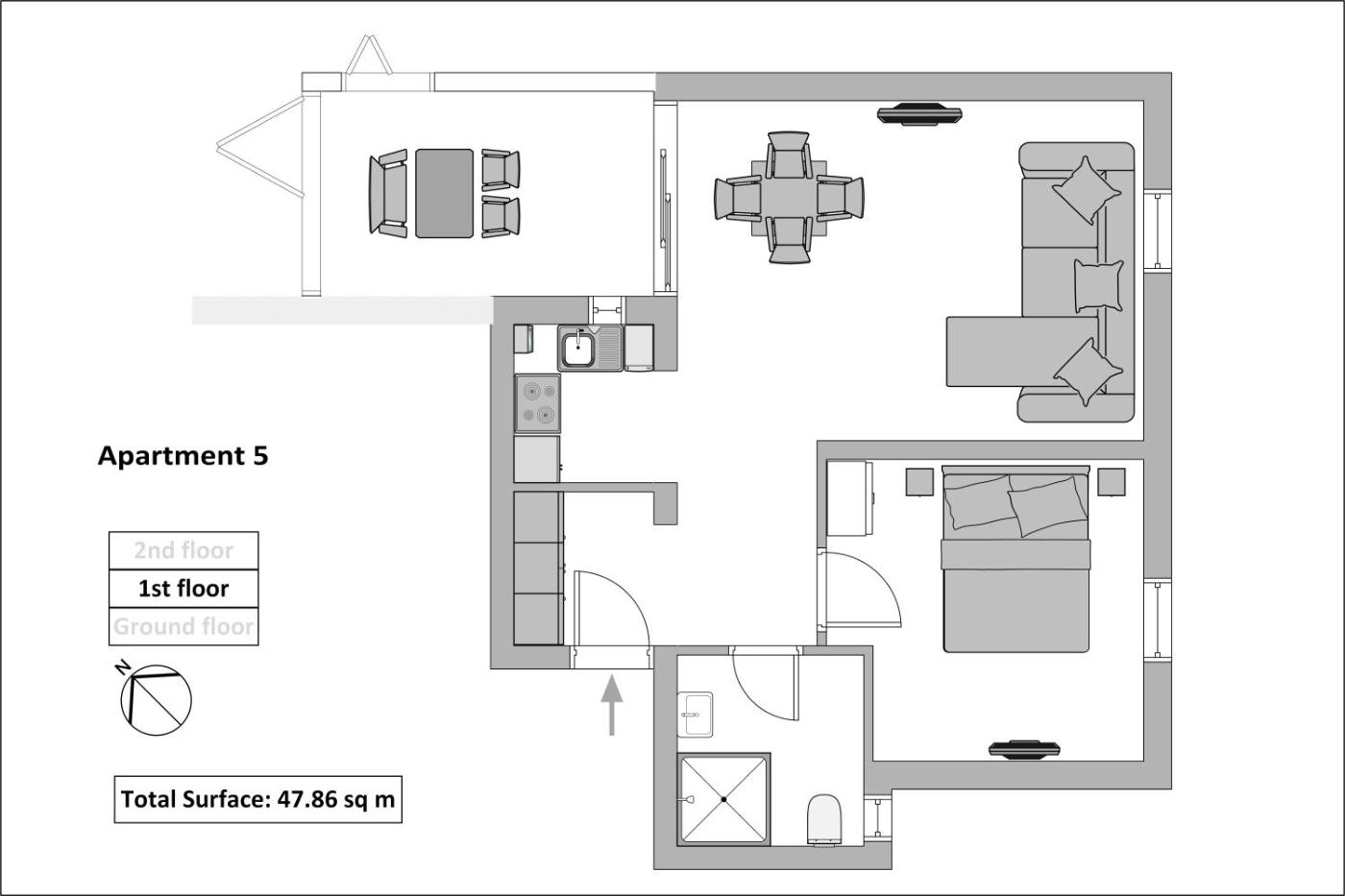 Apartment with Balcony. Featuring a private entrance, this air-conditioned apartment is comprised of 1 living room, 2 separate bedrooms and 1 bathroom with a walk-in shower and a hairdryer. Guests can make meals in the kitchen that comes with a stovetop, a refrigerator, a dishwasher and kitchenware. Boasting a terrace with garden views, this apartment also offers soundproof walls and a flat-screen TV with satellite channels. The unit offers 3 beds. ;